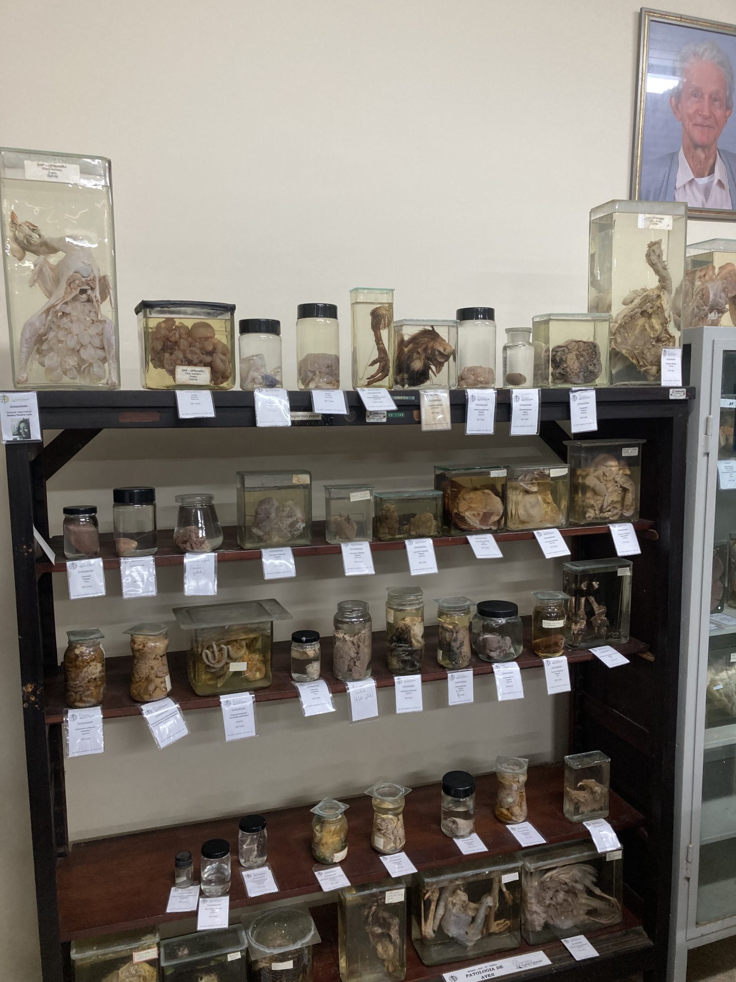 Em exposição, estão peças de interesse da parasitologia, tanto de parasitas quando peças anatômicas de animais infectados, anomalias anatômicas, malformações e neoplasias; assim como a coleção de plantas tóxicas e peças anatômicas de animais que foram expostos ou ingeriram estas plantas.