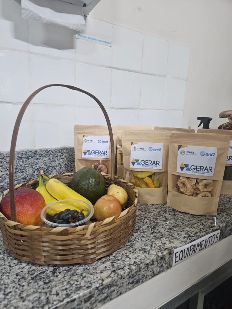 A programação integrou momentos teóricos e práticos: aula introdutória sobre energia solar, energia da biomassa e processamento de produtos agrícolas, seguida de experimentações no LabGERAR.