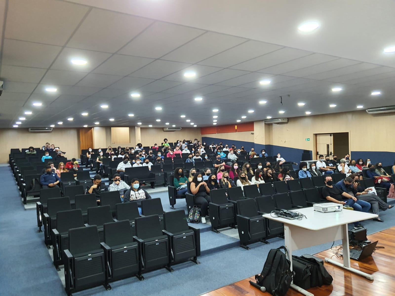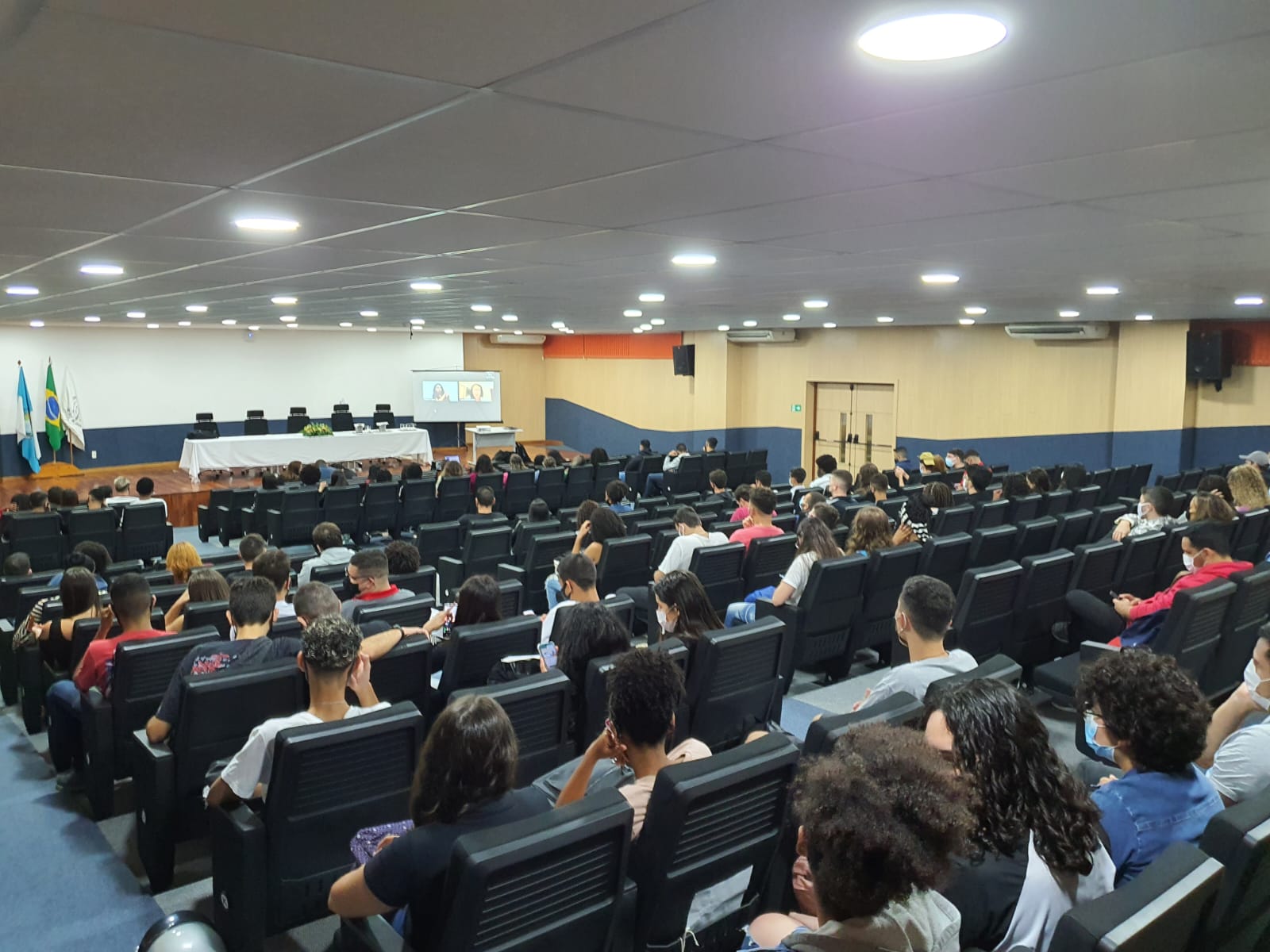 No Instituto Três Rios (ITR), os calouros acompanharam a transmissão da Aula Magna por meio de um telão no Anfiteatro do câmpus. No dia 2 de junho, às 18h, acontece a Aula Inaugural presencial no ITR. Confira a programação em https://portal.ufrrj.br/aulas-inaugurais-dos-campus-seropedica-nova-iguacu-e-tres-rios/
