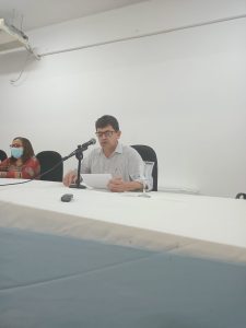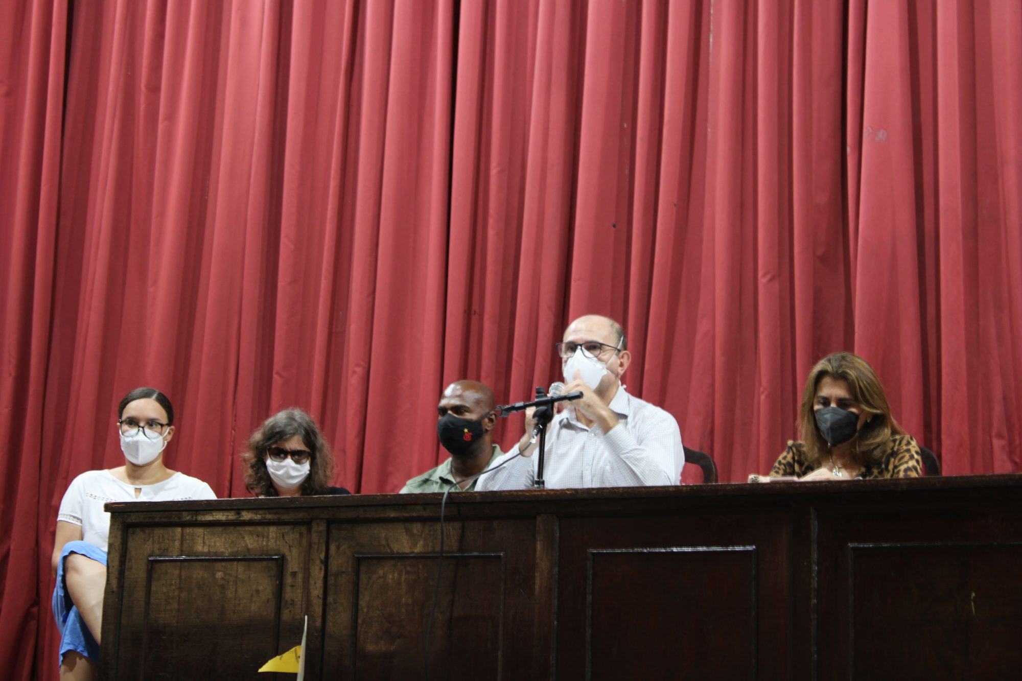 Os integrantes da mesa de abertura destacaram a importância de os alunos se atentarem às ameaças que a educação pública sofre, principalmente na conjuntura atual, que é a do retorno do ensino presencial. Foi o que disse Rosa Maria Mendes, pró-reitora de Extensão, ao questionar se a universidade conseguirá continuar sua atuação frente aos cortes orçamentários: “Nós, professores e alunos, temos que ter ações fora da universidade. Vivemos momentos muito difíceis porque a ciência não está sendo respeitada. Os cortes orçamentários são muito graves. Devemos pensar: será que a gente vai continuar?”.