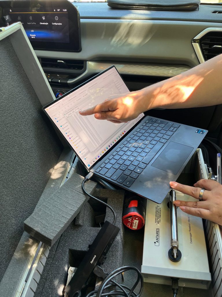 Durante a campanha, foram realizadas medições geotérmicas em quatro poços artesianos profundos distribuídos no campus, permitindo a coleta de dados sobre a temperatura em subsuperfície. Essas informações são essenciais para o cálculo do fluxo de calor terrestre, indicador que expressa a quantidade de energia térmica proveniente do interior da Terra.