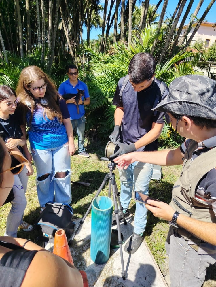 A ação teve início com uma etapa teórica, na qual os alunos foram introduzidos aos conceitos fundamentais da Geotermia e às atividades envolvidas na aquisição de dados, incluindo a integração com a disciplina de Hidrogeologia, já que as medições foram realizadas em poços artesianos. Em seguida, os estudantes participaram da preparação técnica e, posteriormente, das atividades práticas em campo, acompanhando de perto todas as etapas do trabalho científico.