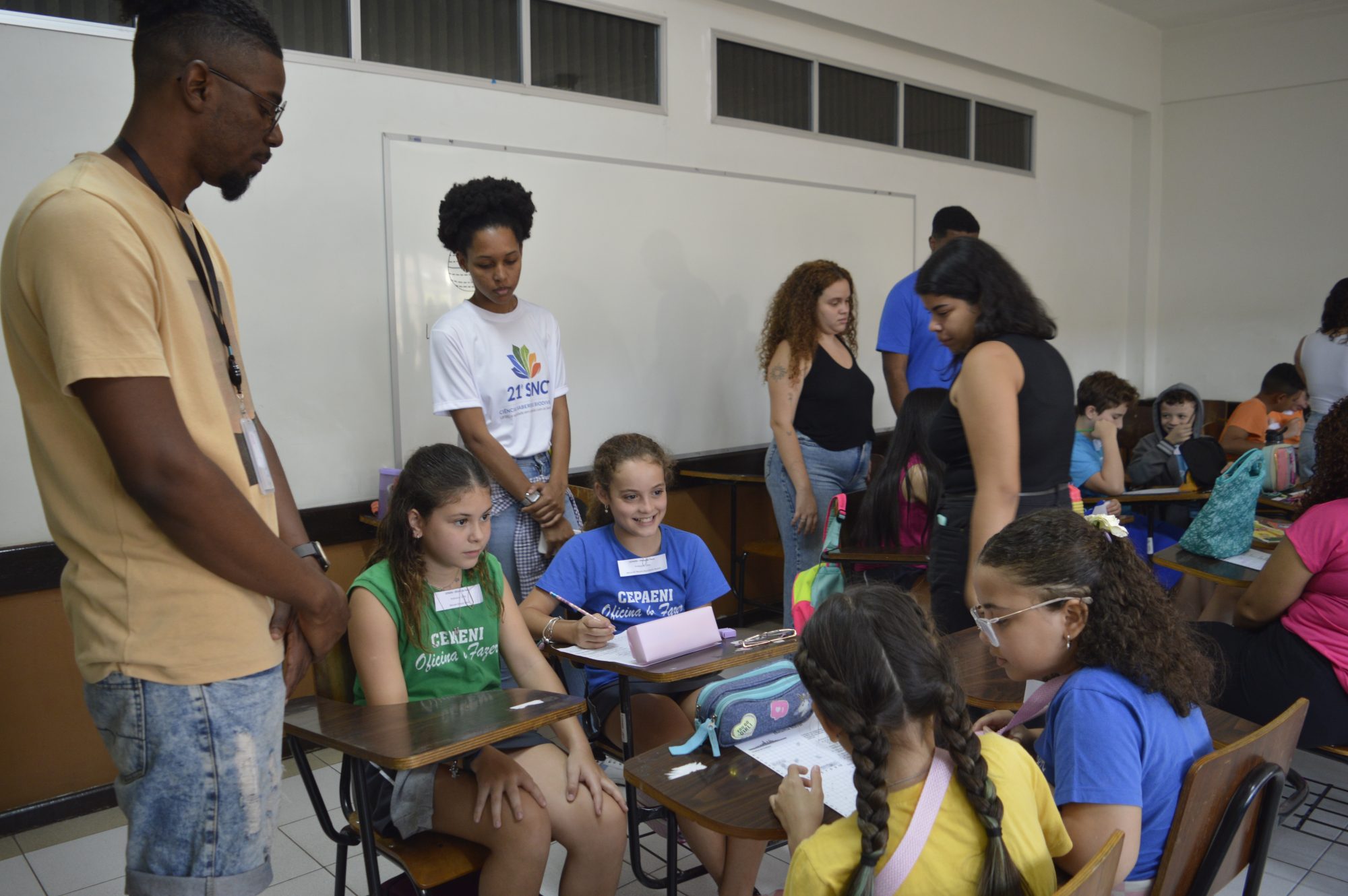 Maysa Barros, discente do 7º período, pontua a relevância da aproximação dos universitários com os estudantes da Educação Básica. “Eles conhecem um outro âmbito de ensino, que irão acessar quando estiverem mais velhos. E, para gente [universitários] também é muito importante, já que somos da Licenciatura. Nem todos fizeram estágio ainda, então é uma oportunidade muito especial de ter esse contato com as crianças”. Além de Paulo e Maysa, também participaram da organização da oficina Cauã Adriano, Anna Clara Dias e Maria Mariana.