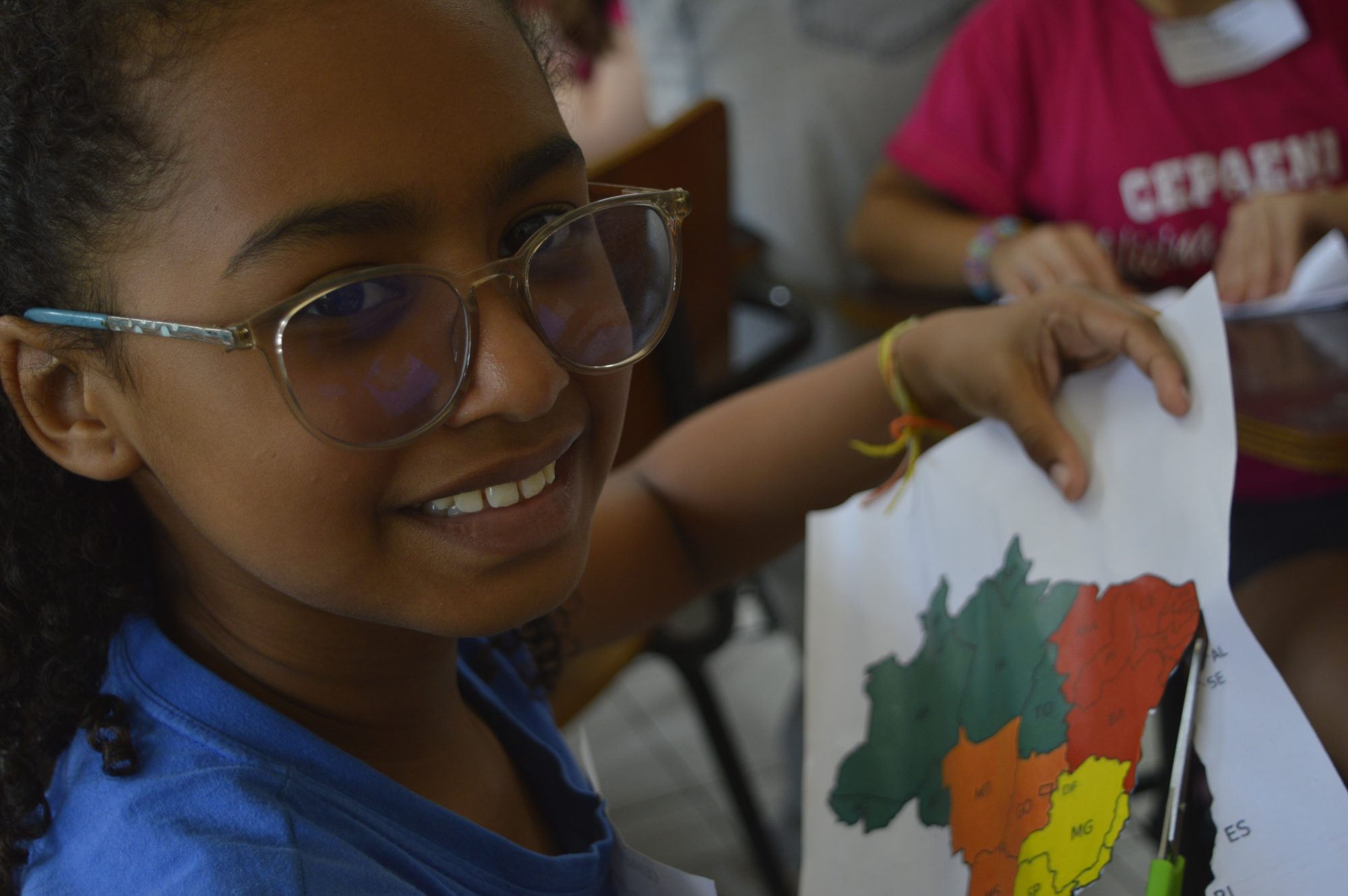 A aluna do 4º ano do CEPAENI – Oficina do Fazer, Ana Clara G. de Castro, parou por um instante de recortar seus continentes para contar que sua mãe é estudante da UFRRJ. “Eu também quero estudar aqui quando crescer”, confidenciou.