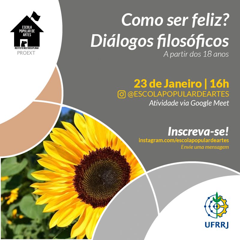Como ser feliz? Diálogos filosóficos – início em 23 de janeiro, às 16h, atividade via Google Meet, faixa etária a partir de 18 anos;