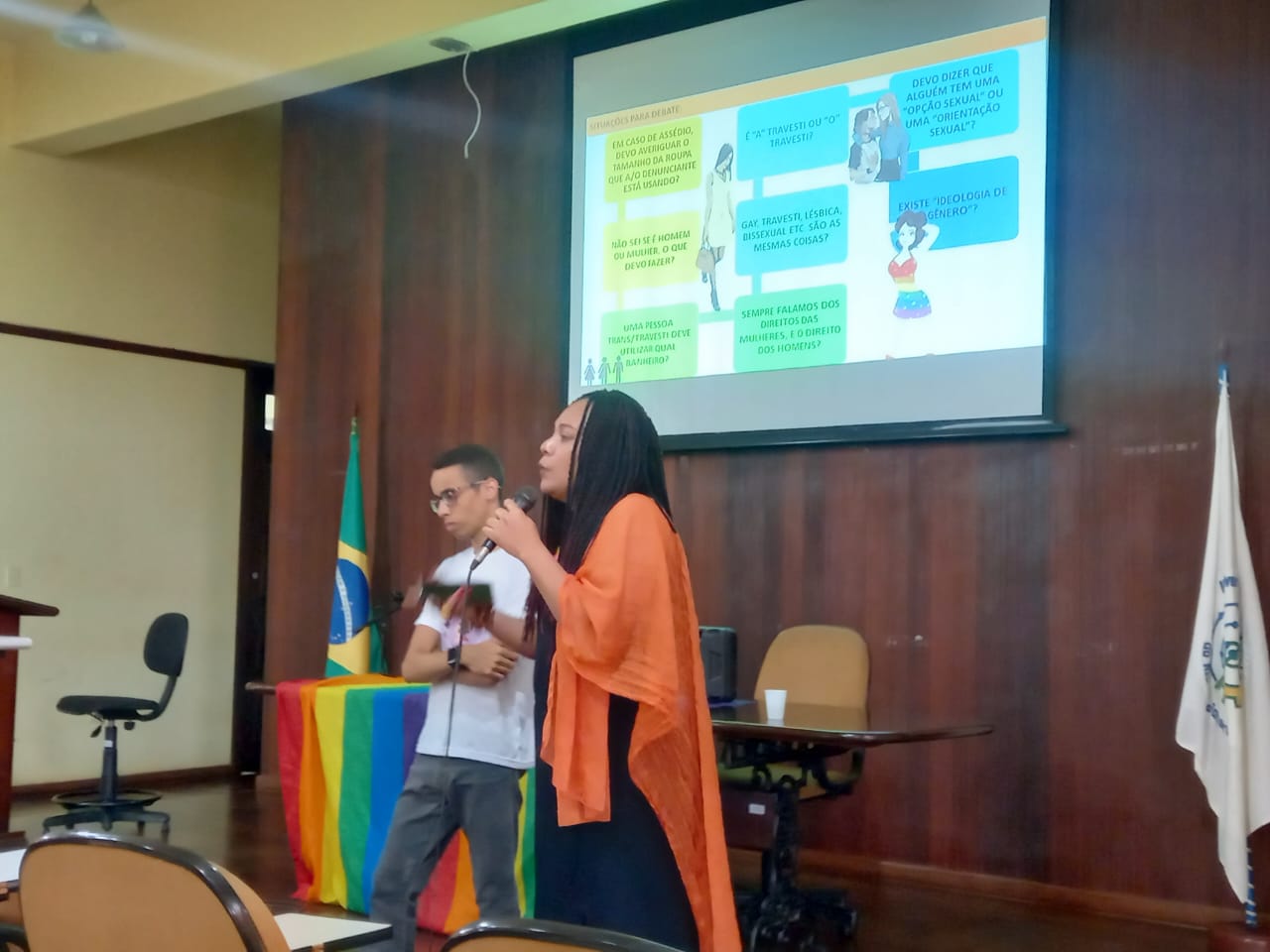 Estiveram presentes o reitor Roberto Rodrigues; o diretor da Divisão de Guarda e Vigilância (DGV) Renan Canuto; a representante da Codep Monique Ayupe; e a pró-reitora adjunta de Assuntos Estudantis e coordenadora da CPID Joyce Alves. O módulo de letramento racial foi ministrado pela professora Alessandra Pio; já o de gênero e sexualidades foi conduzido pelo professor Leandro Rodrigues, pelo graduando em Licenciatura em Educação do Campo (LEC) Eliezer Cordeiro e pela pró-reitora Joyce Alves.