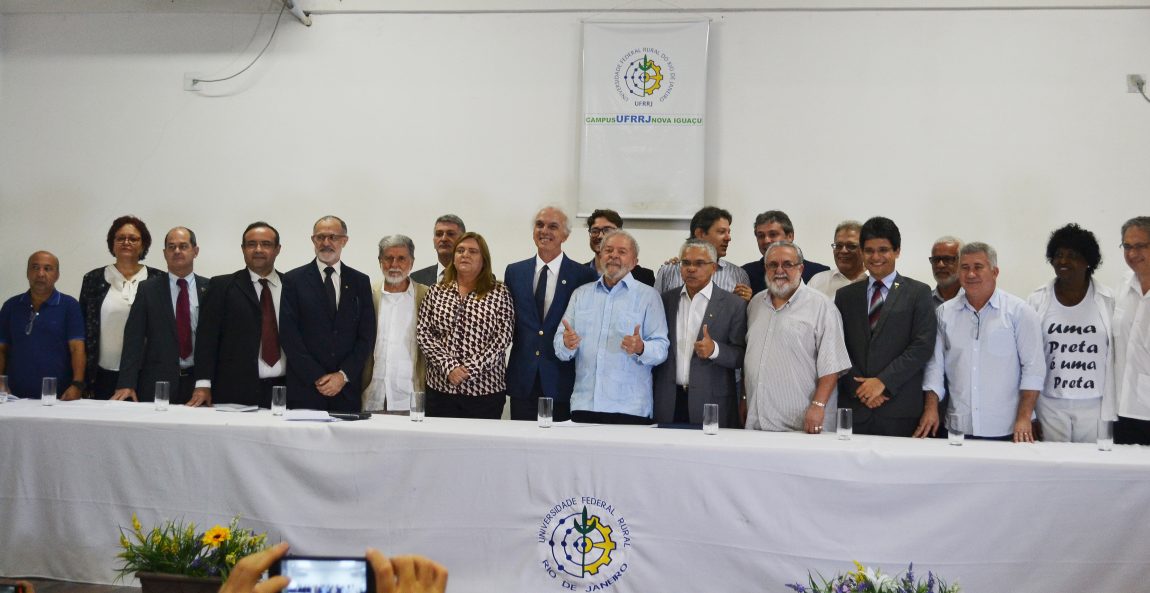A visita do ex-Presidente da República Luís Inácio Lula da Silva ao Instituto Multidisciplinar, câmpus de Nova Iguaçu da UFRRJ, em 8 de dezembro, deu ao político não apenas a oportunidade de conhecer uma das obras construídas em sua gestão, mas também de conversar com reitores e diretores das instituições públicas de ensino e pesquisa do Rio de Janeiro. No encontro, os dirigentes fizeram uma análise do contexto de decadência em que se encontra a educação no país e solicitaram ao ex-presidente apoio à defesa da autonomia universitária, a valorização dos projetos públicos para educação e ciência no Brasil. Participaram do evento UFRRJ, UFF, UFRJ, Unirio, UERJ, UENF, UEZO, CEFET-RJ, IFF, IFRJ, Fiocruz, LNCC, INT e SBPC.