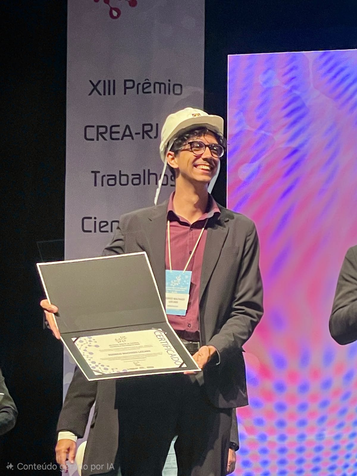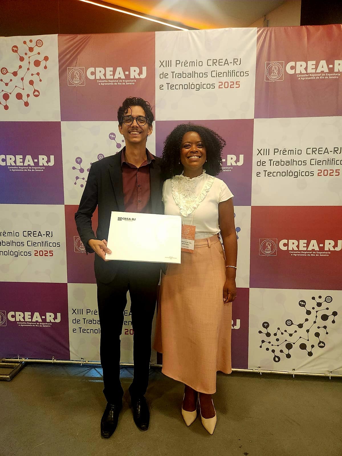 O estudante Rodrigo Machado Liscano, do Departamento de Engenharia Química da Universidade Federal Rural do Rio de Janeiro (DEQ/UFRRJ), recebeu, na quarta-feira, 10 de dezembro, o Prêmio Crea-RJ pelo trabalho “Utilização de partículas de polihidroxibutirato tratadas com plasma no desempenho de filmes de amido termoplástico”.