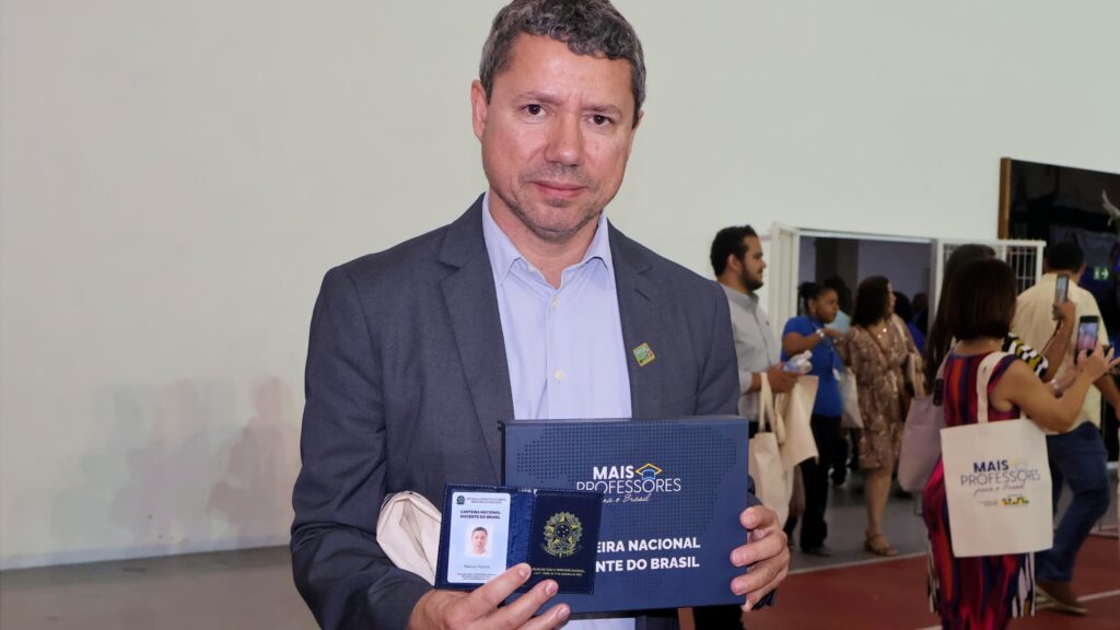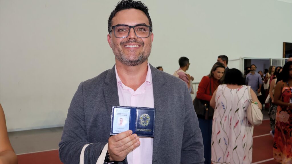 “Sou licenciado desde 2008. Em 2016, experimentei a docência junto com a carreira técnica e, desde fevereiro de 2023, sou professor universitário. Toda a minha formação ocorreu na escola pública, que transformou minha trajetória e me permitiu ser o primeiro de minha família a chegar à universidade. Ao participar do lançamento da Carteira Nacional Docente, vejo um gesto concreto de reconhecimento à docência e, sobretudo, alimento a esperança de que ela se integre a políticas nacionais mais amplas de valorização da educação — com melhores condições de trabalho, formação continuada e reconhecimento do tempo docente. Professoras e professores são agentes de mobilidade social e de equidade; quando são valorizados, o país avança e cada estudante enxerga, na sala de aula, a possibilidade real de um futuro melhor”, afirma Marlucio Barbosa, atual pró-reitor adjunto de Planejamento da UFRRJ e docente do Departamento de Tecnologias e Linguagens (IM/UFRRJ). Marlucio foi servidor técnico-administrativo da UFRRJ de 2010 a 2023, onde atuava como analista de tecnologia da informação, chegando a ser coordenador da Coordenadoria de Tecnologia da Informação e Comunicação (Cotic). Em 2016-2017, atuou como professor substituto e, em 2023, tomou posse como professor adjunto da Instituição.