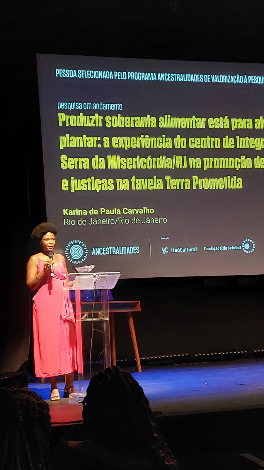 A cerimônia de premiação foi realizada durante o Seminário “Ancestralidades: Desafios Ambientais e Raciais”. Karina Carvalho recebeu o prêmio das mãos de Sueli Carneiro, renomada intelectual e ativista dos direitos humanos, reconhecida por sua luta pela igualdade racial e de gênero.