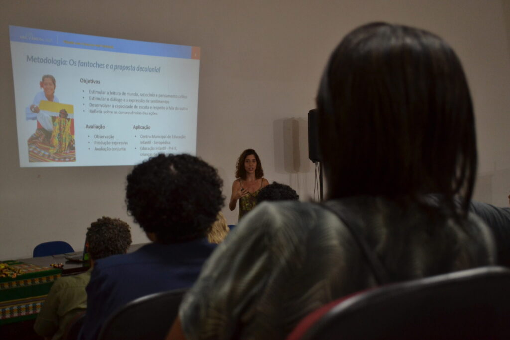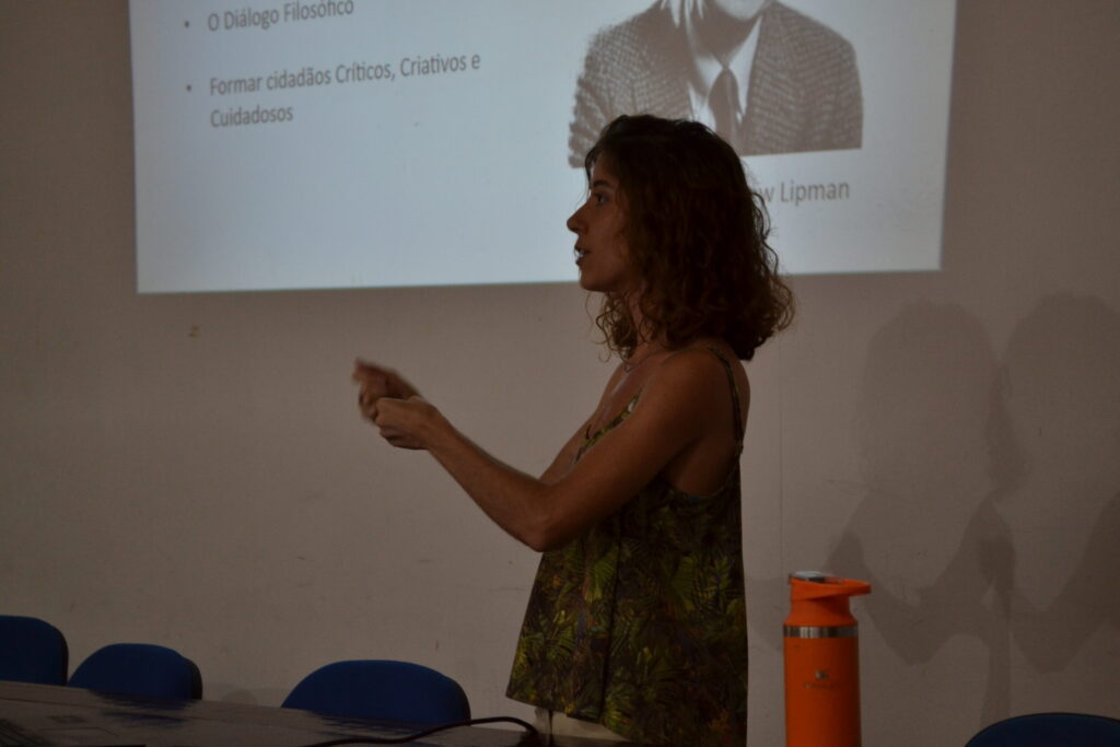A primeira apresentação foi conduzida por Bárbara Werneck, estudante do sexto período de Pedagogia da UFRRJ. Ela apresentou projeto realizado com crianças no Teatro Municipal de Seropédica (RJ), que trabalha filosofia com crianças por meio de histórias criadas com fantoches. Bárbara explica que escolheu a arte como meio de transmitir conhecimento porque prende mais a atenção das crianças e facilita a conexão emocional com o conteúdo, tornando o aprendizado mais significativo.