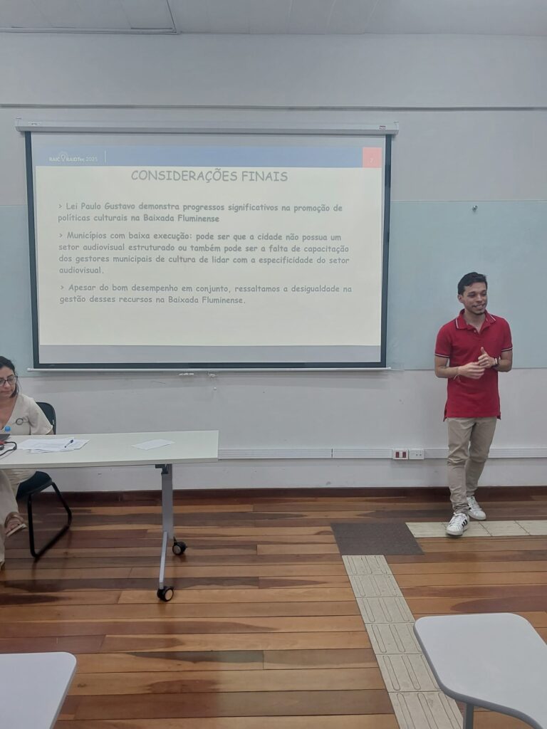 As apresentações tiveram início com estudos sobre adoecimento docente diante das reformas educacionais, seguidos de trabalhos sobre saúde pública e formação acadêmica em escolas municipais. Pesquisas em Ciências Sociais discutiram responsabilidade social empresarial, riscos ambientais em áreas urbanas e a execução de políticas de urbanização na Baixada Fluminense. Já as contribuições na área de História e estudos culturais abordaram práticas tradicionais, patrimônio e memória social, destacando a pluralidade de identidades e experiências locais.