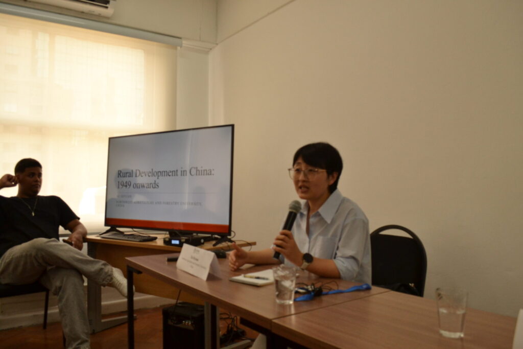 A segunda parte do evento contou com a participação da professora Xu Siyuan, da Northwest Agriculture and Forestry University (China), que apresentou uma palestra sobre “Desenvolvimento Rural na China e seus potenciais de cooperação com o Brasil”. O debate, mediado pela professora Ana Garcia e comentários de Fabiano Escher trouxe à tona novas possibilidades de parceria entre as duas nações, especialmente nas áreas de desenvolvimento rural e pesquisa acadêmica.