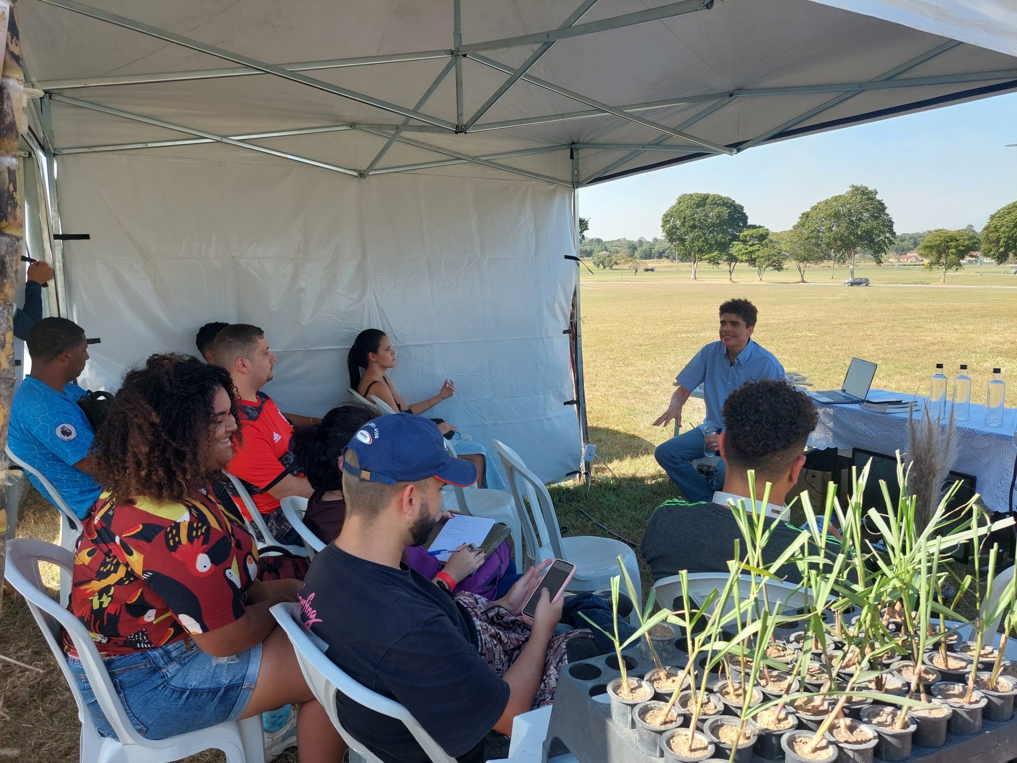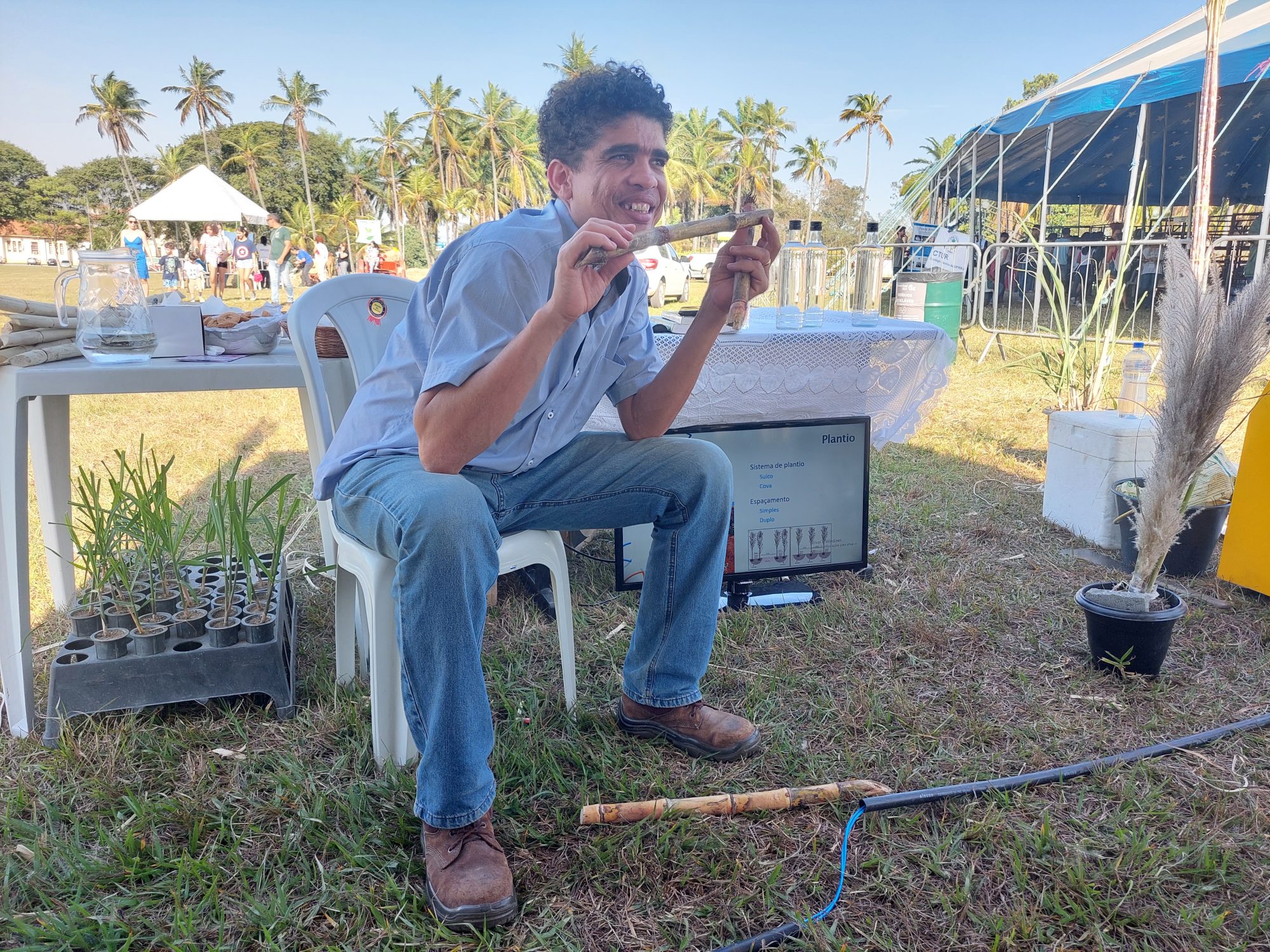 O objetivo do estande era falar sobre a cana destinada para a cachaça. E, durante a conversa, o engenheiro agrônomo Giovane Leal de Souza Silva ensinou detalhes sobre essa planta, suas formas de cultivo e como funciona a produção. O agrônomo do CCG também apresentou a versatilidade de produtos que podem ser feitos a partir da matéria-prima.