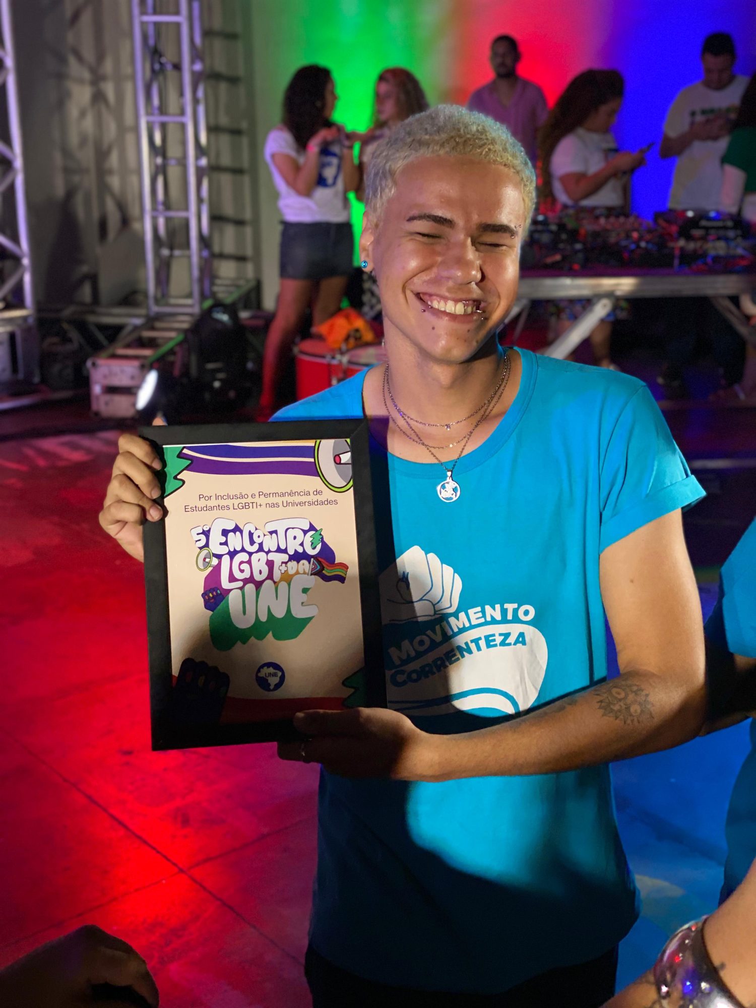 A estudante Alice Oliveira Moço, do 7º período de Letras do Instituto Multidisciplinar (IM/UFRRJ), foi homenageada durante o 5° Encontro Nacional dos Estudantes LGBT da União Nacional dos Estudantes (UNE), realizado entre 8 e 10 de novembro na Universidade Estadual do Rio de Janeiro (Uerj). Alice recebeu o reconhecimento da entidade por conta do trabalho que desenvolve em favor da comunidade trans da Universidade Rural.