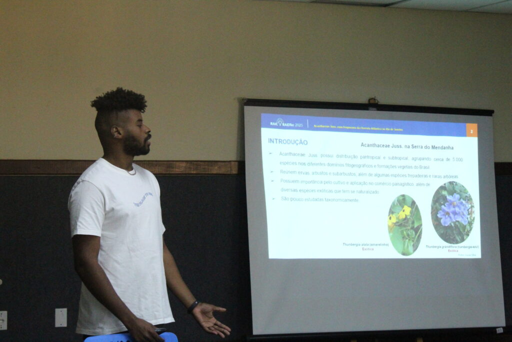 Na mesma família, Lucas de Oliveira da Silva, estudante de Agronomia, apresentou a pesquisa “Acanthaceae Juss. num fragmento da Floresta Atlântica no Rio de Janeiro”, que abordou a temática sob a perspectiva de distribuição geográfica e estudo de conservação da flora na Serra do Mendanha. Houve o registro de 25 espécies, sendo seis exóticas e 19 nativas.
