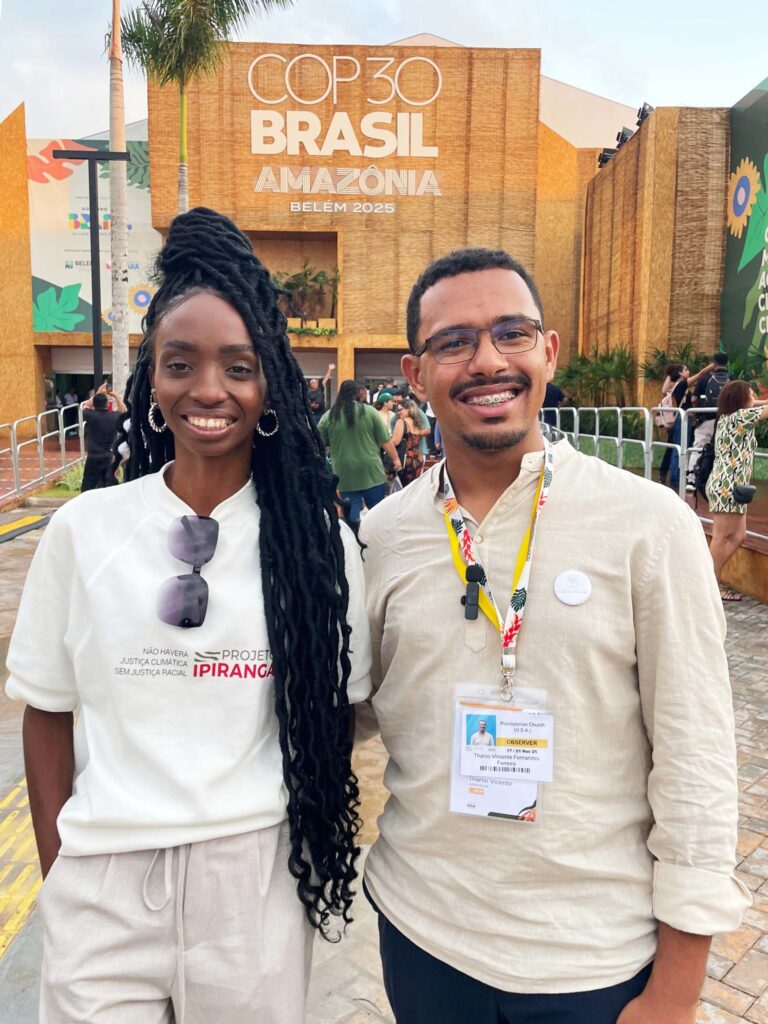 “No início do ano, ficamos mais de 20 dias sem água na minha cidade, em Angra dos Reis, o que nos levou a carregar baldes para cima do morro para atender as necessidades mais básicas”, disse Tharso Ferreira “A crise climática já não é um anúncio, mas uma realidade vivida de maneira mais intensa pelos grupos mais vulnerabilizados, especialmente a população negra. Participar do maior evento internacional sobre a mudança do clima para mim é um momento marcante. Dos dias 17 a 21 estarei na Blue Zone, espaço restrito, acompanhando as rodadas de negociação e pressionando para que os documentos produzidos considerem a população afrodescendente.”