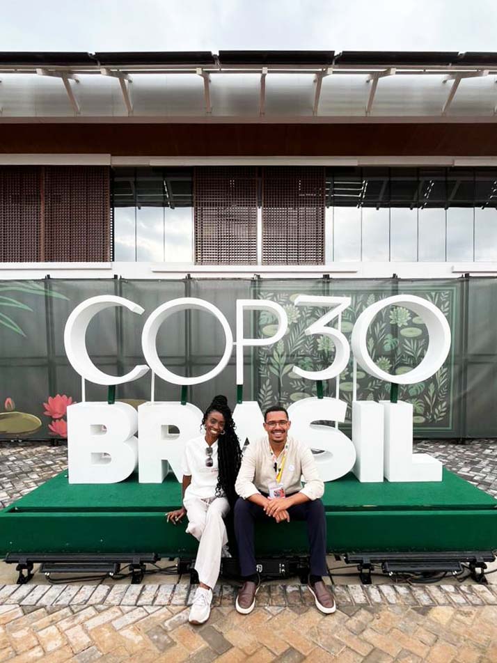 Os estudantes do câmpus Seropédica da Universidade Federal Rural do Rio de Janeiro (UFRRJ) Tharso Vicente Fernandes Ferreira (Direito) e Vitória Alessandra Vieira de Abreu (Psicologia) estão participando da COP 30 – Conferência das Nações Unidas sobre as Mudanças Climáticas, em Belém, no Pará.