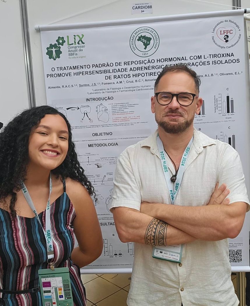 Os trabalhos premiados foram “O tratamento padrão de reposição hormonal com l-tiroxina promove hipersensibilidade adrenérgica em corações isolados de ratos hipotireoideo”, de Jéssica Santos; e “Effect of pharmacological and non pharmacological therapy on memory and learning in the adhd experimental model”, de Roberto Gonçalves.