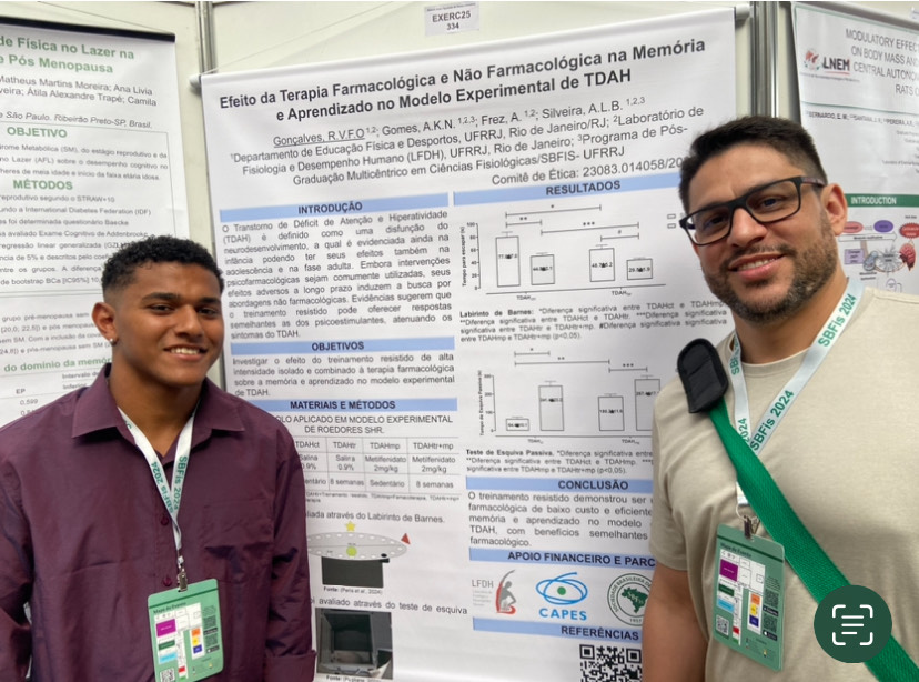 Os estudantes de Educação Física Jéssica da Silva Santos (bolsista Pibic/UFRRJ) e Roberto Victor Gonçalves receberam menções honrosas por trabalhos apresentados no 59° Congresso Anual da Sociedade Brasileira de Fisiologia, realizado em Caxambu/MG, entre os dias 14 e 17 de setembro. Os alunos de Iniciação Científica são orientados pelos professores Emerson Olivares (Departamento de Ciências Fisiológicas/ICBS) e Anderson Silveira (Departamento de Educação Física/IE).