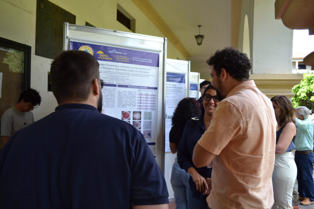 O segundo dia da RAIC contou com mais de 80 pôsteres da grande área de Ciências Agrícolas, como Biologia, Zootecnia e Medicina Veterinária. Localizado na ala direita do P1, o evento chama atenção de quem passa pelo prédio. Os estudantes de Medicina Veterinária do 3º período, Manuela Brandão e Emanuel Mello, foram alguns desses jovens pesquisadores. A dupla apresentou o trabalho “Principais forames no Crânio e Mandíbula do Tigre”, em que detalham a anatomia do grande felino. Para eles, a experiência em expor o trabalho contribui nessa caminhada: “A gente consegue já começar a construir carreira desde cedo”, explica Manuela. Emanuel complementa: “Acho que a principal importância disso é criar um exemplo para mais pessoas que às vezes têm vontade, mas não sabem por onde começar”.