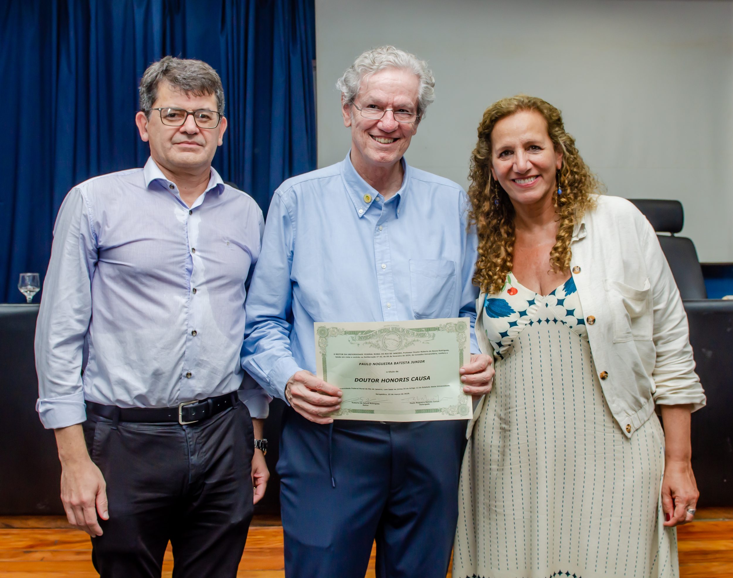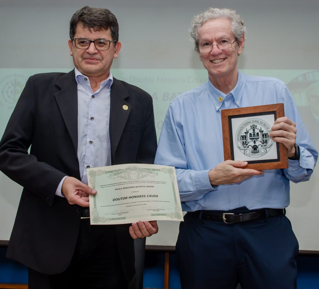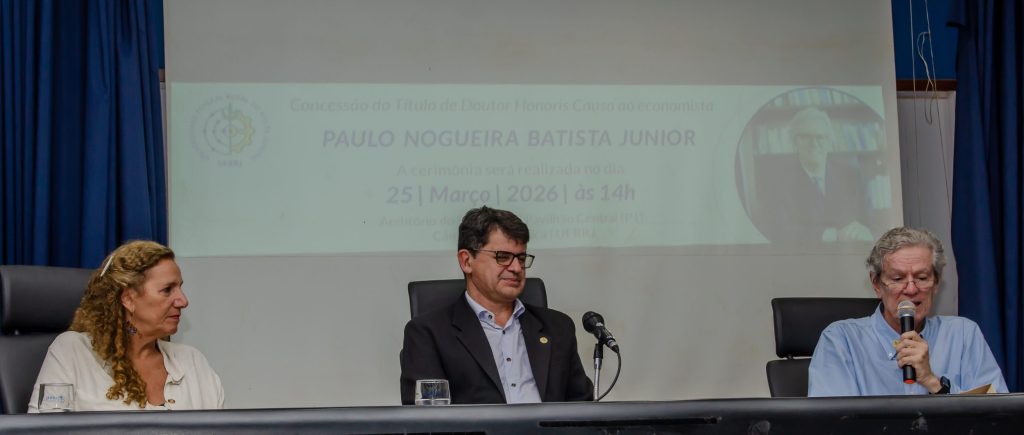Aos 70 anos e com uma trajetória marcada por negociações da dívida externa brasileira nos anos 1980 e cargos de liderança no FMI e no Novo Banco de Desenvolvimento ligado ao bloco político-econômico BRICS, o economista Paulo Nogueira Batista Jr. recebeu seu primeiro título de Doutor Honoris Causa. A homenagem foi concedida pela Universidade Federal Rural do Rio de Janeiro (UFRRJ) na última quarta-feira (25/03).