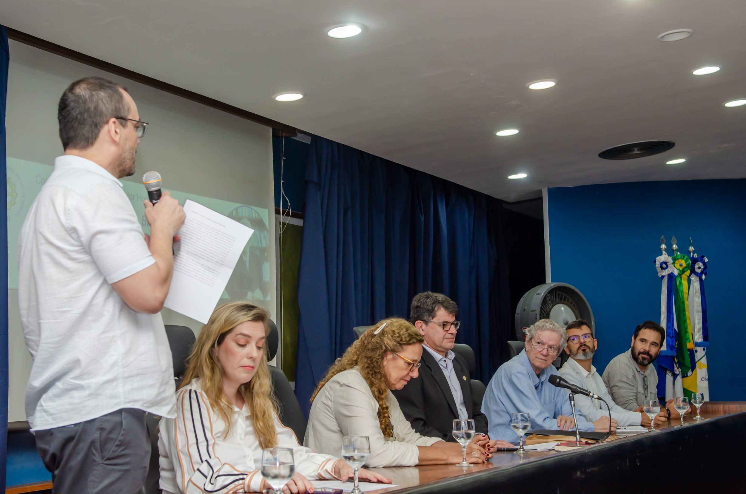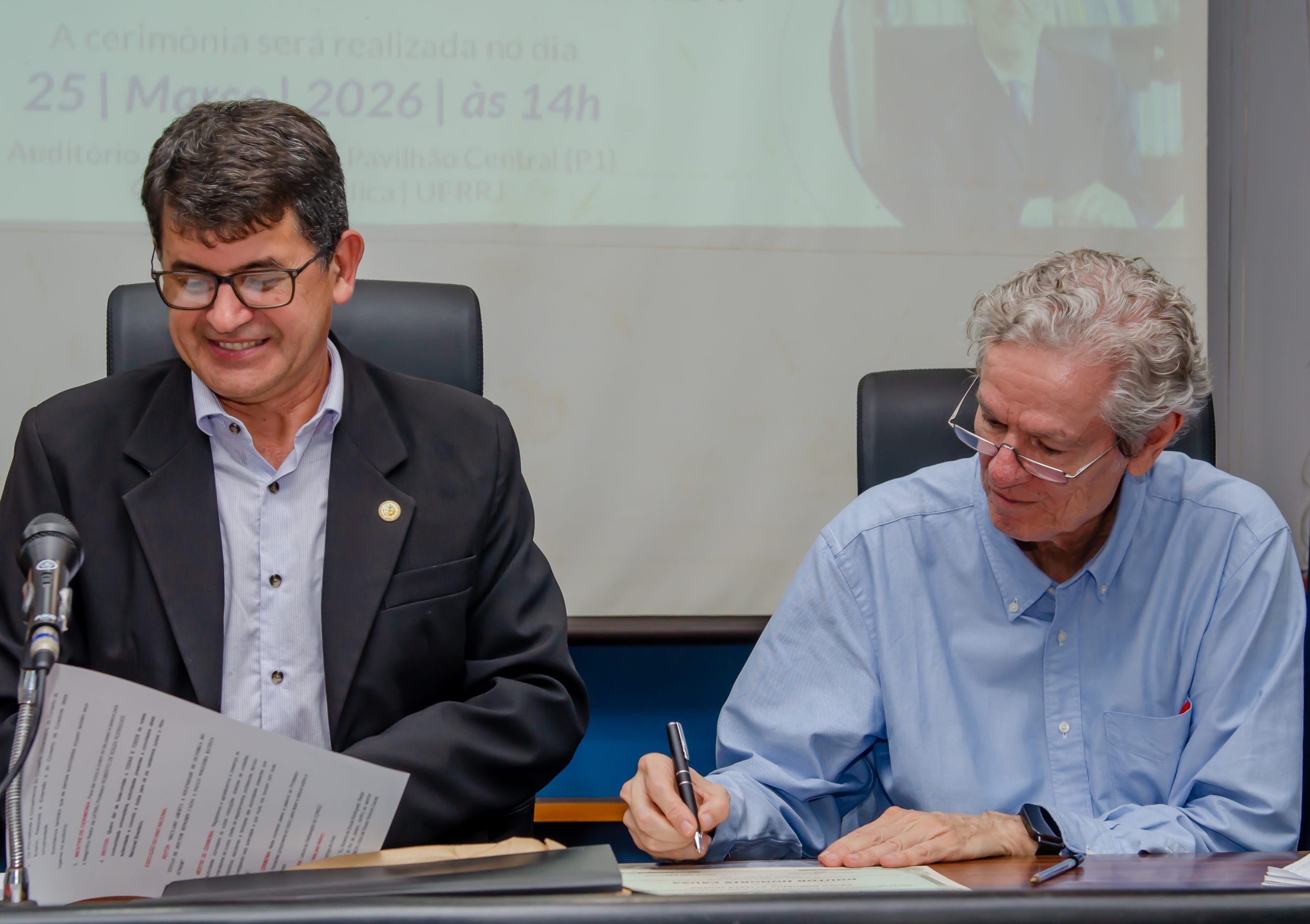 Roberto Rodrigues retomou a palavra para celebrar o momento, destacando a história centenária da UFRRJ e seu papel estratégico no desenvolvimento da Baixada Fluminense. O reitor ressaltou a importância de reconhecer a soberania nacional e o papel do Estado como indutor do desenvolvimento, temas centrais na obra do homenageado, e convidou a deputada Jandira Feghali para discursar.