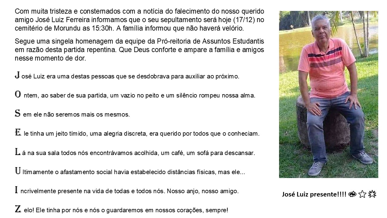 Portal UFRRJ > ASSUNTOS ESTUDANTIS > Notícias Assuntos Estudantis > Homenagem da Pró-reitoria de Assuntos Estudantis ao Servidor José Luiz Ferreira
