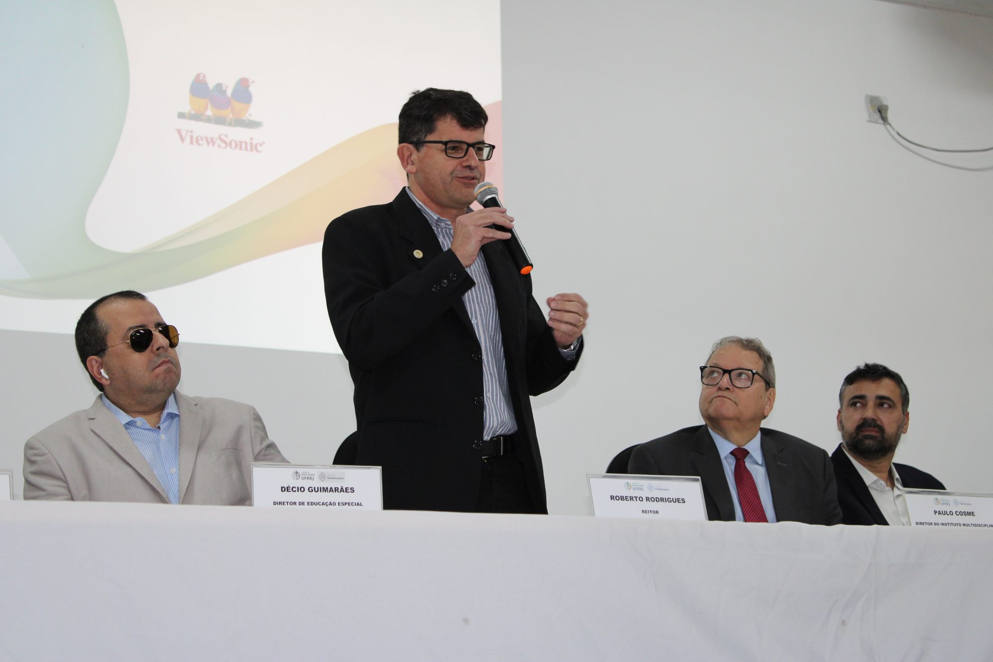 No primeiro dia, o diretor do MEC, professor Décio Nascimento Guimarães, foi recebido pelo reitor Roberto Rodrigues e pelo diretor do IM Paulo Cosme. Com o objetivo de apresentar os avanços na acessibilidade digital da UFRRJ e avaliar possíveis parcerias, a reunião contou ainda com a presença das professoras Gabriela Rizo, coordenadora da Educação a Distância da UFRRJ, e Márcia Pletsch, coordenadora da Licenciatura em Educação Especial e da Especialização em Educação Especial e Inovação Tecnológica.