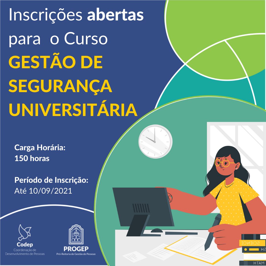 A Coordenação de Desenvolvimento de Pessoas (Codep/Progep) abriu inscrições para o curso Gestão de Segurança Universitária.