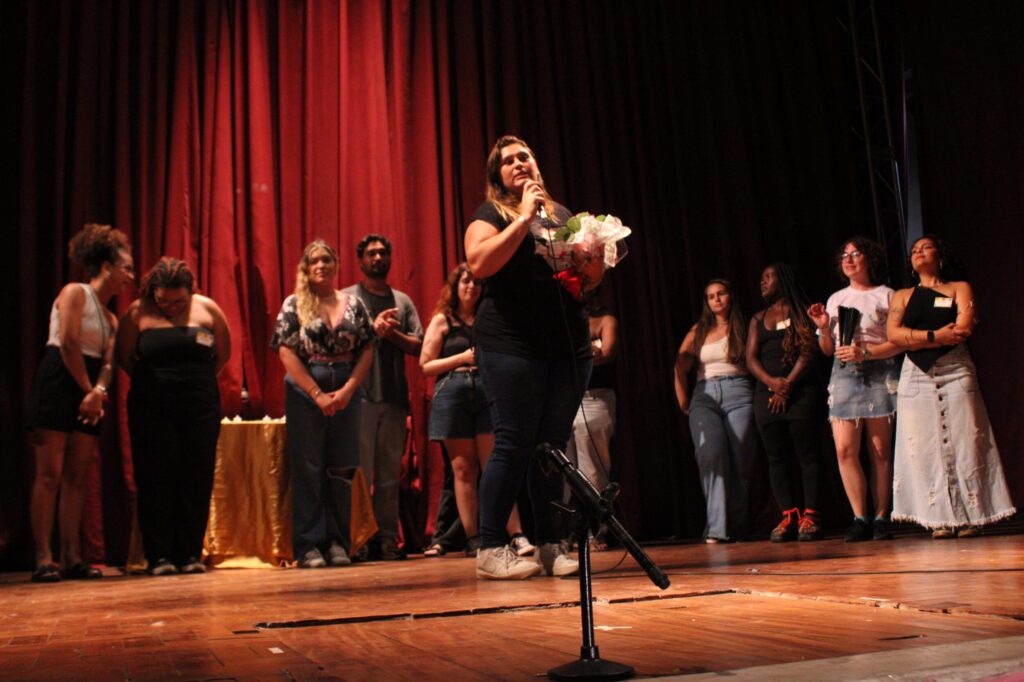 E a emoção continuou com uma linda homenagem que os integrantes do Centro de Arte e Cultura (CAC) fizeram para a coordenadora Milena Amaral, agradecendo pela incrível administração do CAC durante o ano.