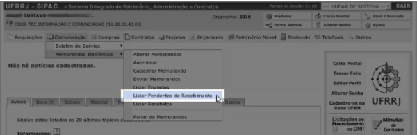 Desde 2016, o Sistema Integrado de Gestão (SIG) da UFRRJ teve o módulo de Sistema Integrado de Patrimônio, Administração e Contratos (SIPAC) liberado para utilização. Essa funcionalidade oferece operações fundamentais para a gestão das unidades responsáveis pelas finanças, patrimônio e contratos da Universidade – além de controlar e gerenciar compras, licitações, boletins de serviços, obras, manutenção do campus, pagamento de bolsas, tramitação de processos, memorandos eletrônicos, dentre outras demandas.