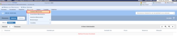 1. Dentro da Mesa Virtual do SIPAC, acesse “Memorandos” > “Cadastrar Memorando”;