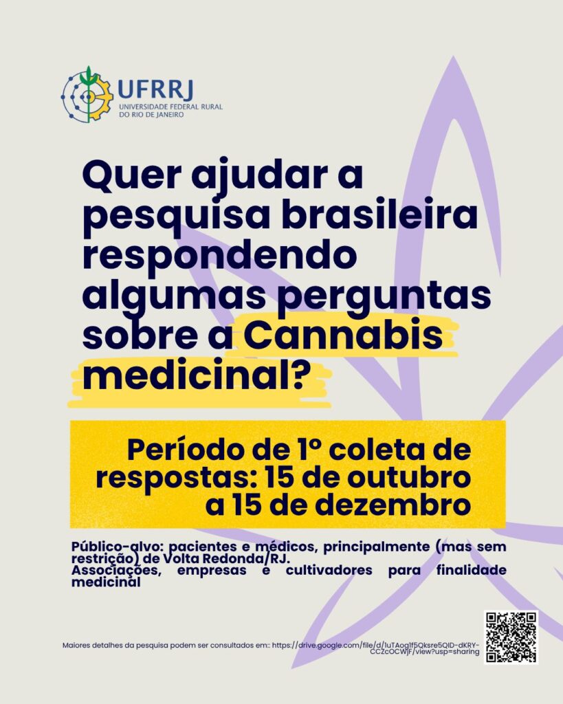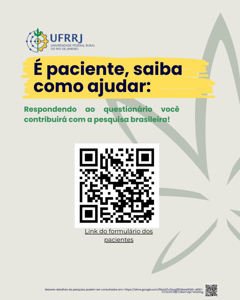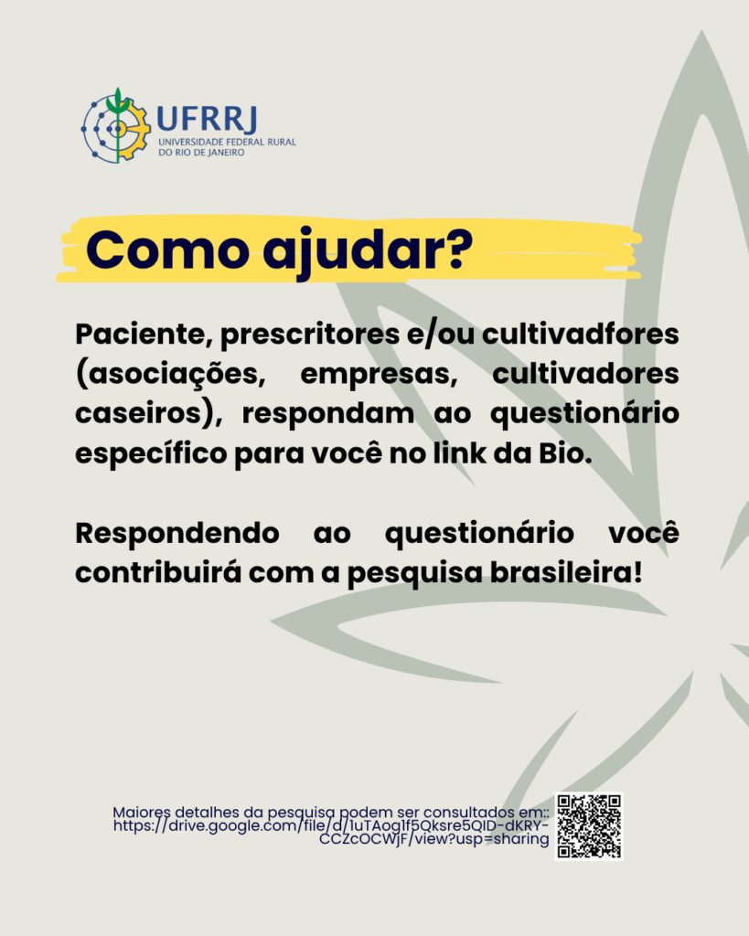 A pesquisa foi aprovada pelo Comitê de Ética em Pesquisa da UFRRJ e tem como objetivo compreender o perfil dos pacientes, prescritores e cultivadores de Cannabis medicinal, identificando custos, barreiras de acesso e alternativas de produção pública ou comunitária, de modo a subsidiar a formulação de políticas públicas mais justas e inclusivas.