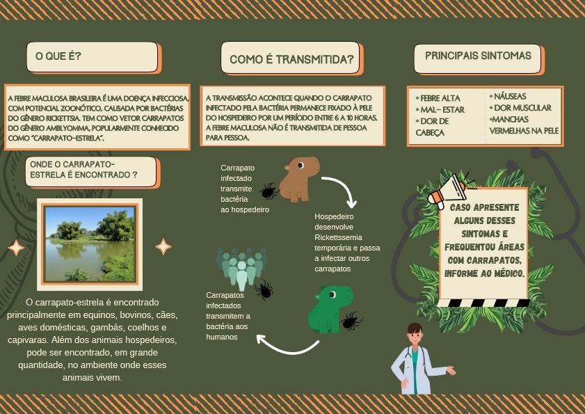 A equipe responsável pela mostra disponibilizou dois links com panfletos sobre febre maculosa (disponível aqui) e carrapatos (disponível aqui).