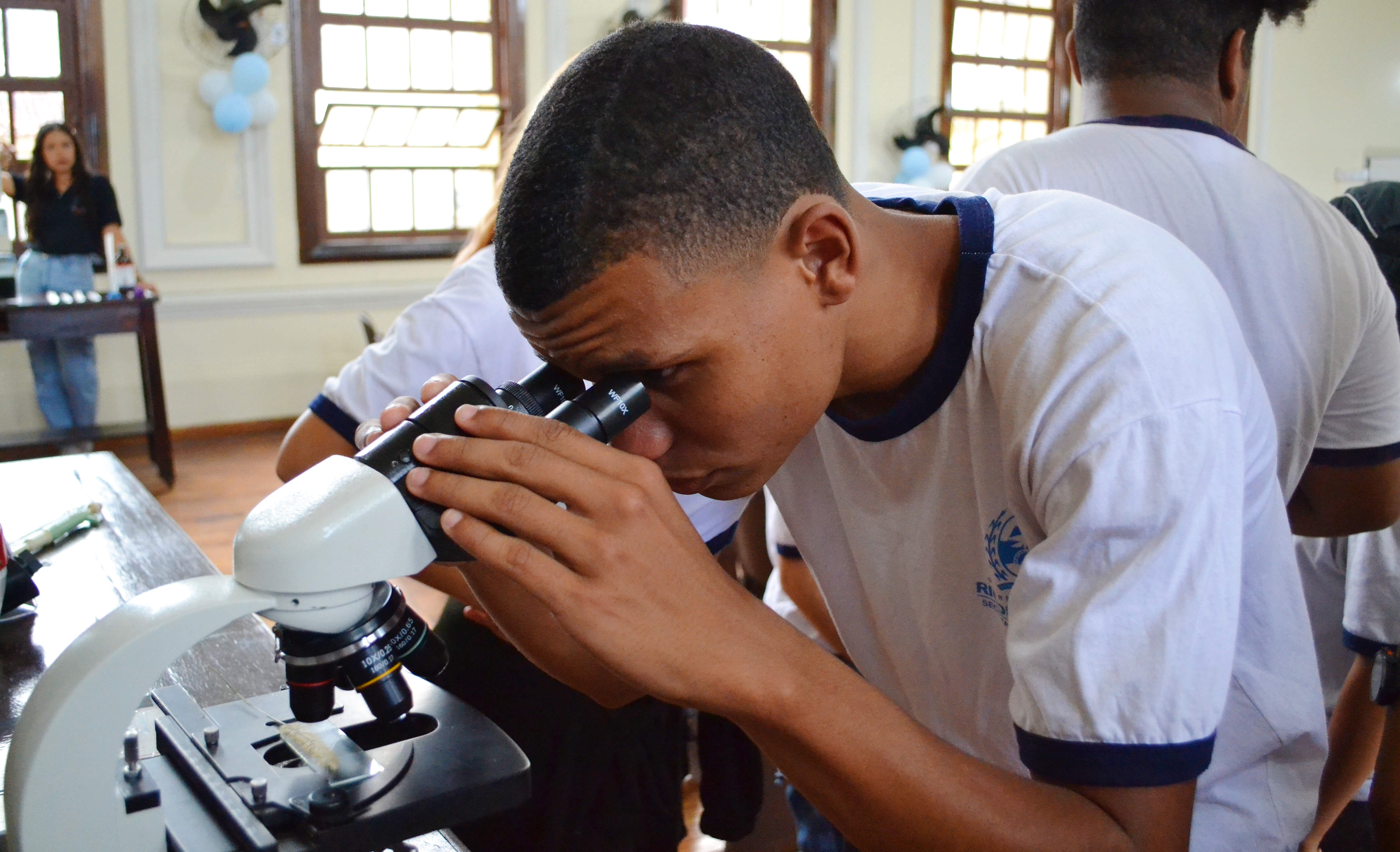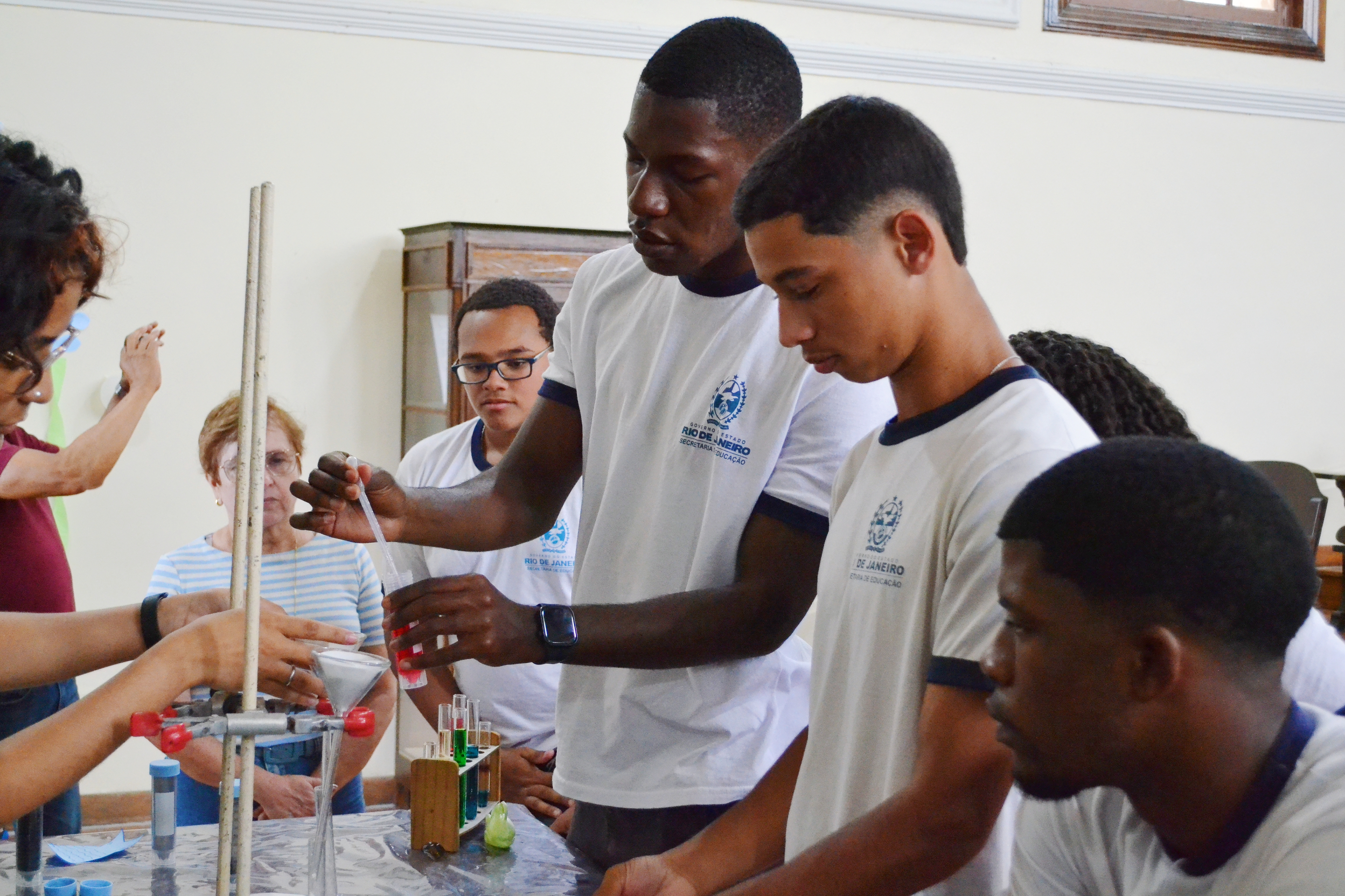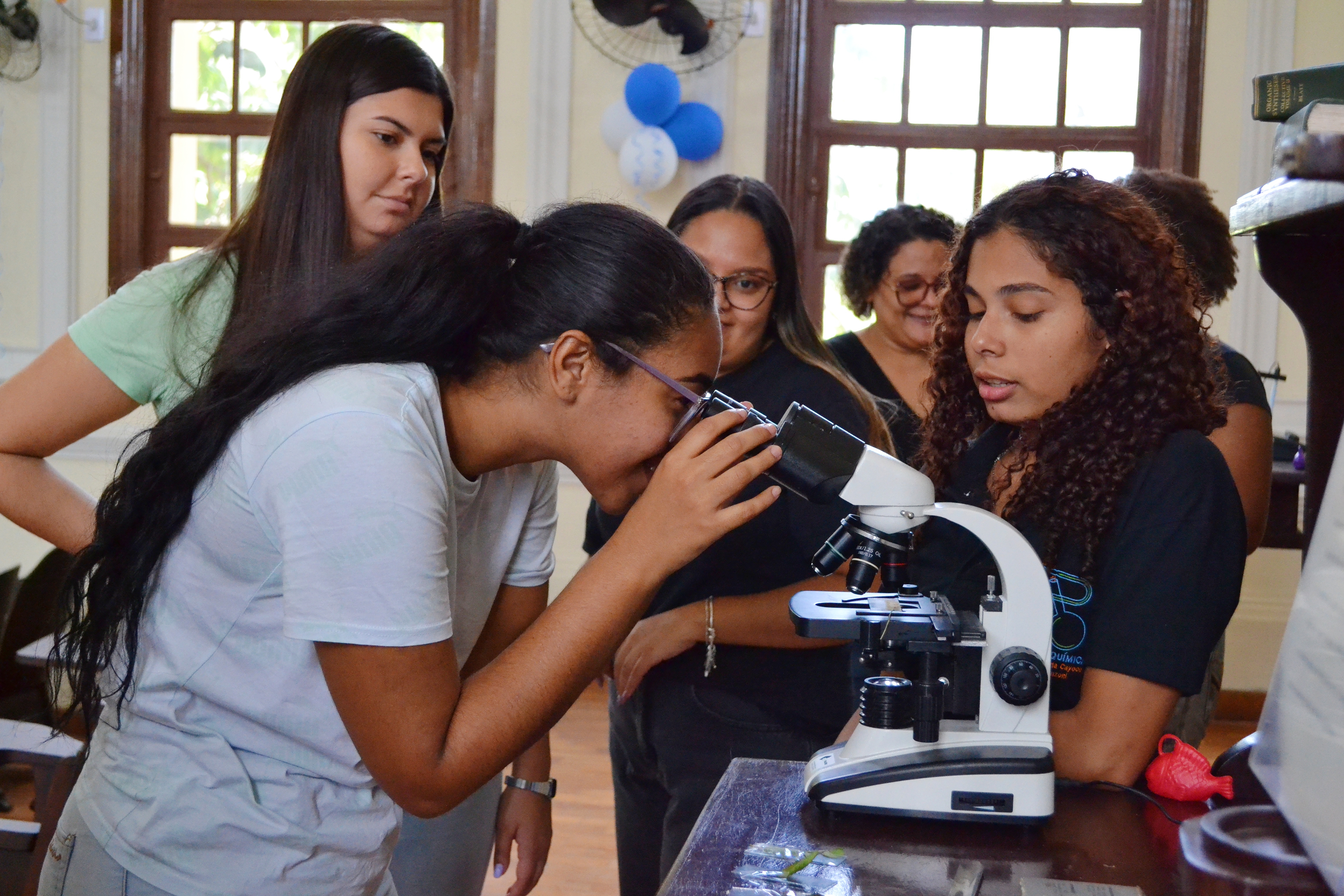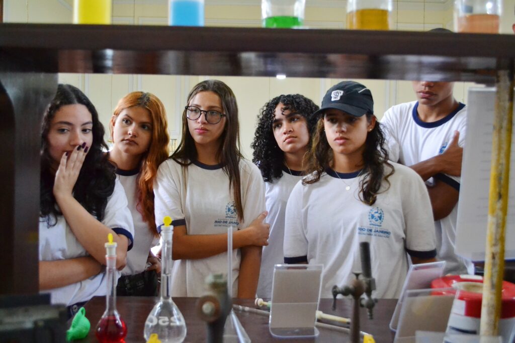 “Nós falamos para eles: ‘vocês já estão saindo daqui formados em química. São os futuros estudantes da Rural’. E os alunos gostam bastante, sempre falam que vão voltar outras vezes”, comentou Bruna Soares, aluna do curso de Química Industrial e voluntária do Museu da Química.