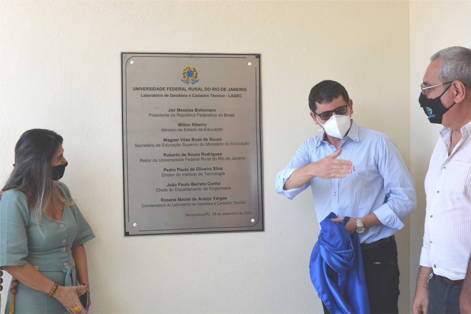 Nesta terça-feira, 28, aconteceu a inauguração das novas instalações do Laboratório de Geodésia e Cadastro Técnico (Lagec), vinculado ao Departamento de Engenharia, Instituto de Tecnologia (IT). A cerimônia de entrega do prédio pela Reitoria foi também um momento simbólico, pois é a primeira obra a ser finalizada após o início da pandemia. O prédio está localizado entre o IT e o Instituto de Zootecnia, no câmpus Seropédica.