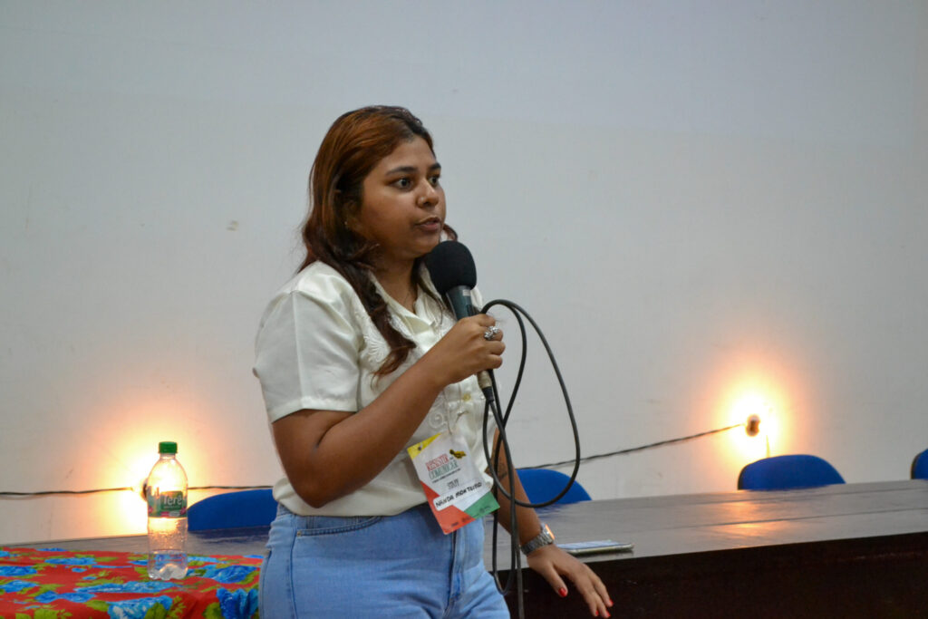 A estudante de Jornalismo da UFRRJ e fundadora do projeto Corre por Elas, Maria Fernanda Monteiro, ministrou a oficina “Jornalismo esportivo sob um recorte de gênero: cobertura de esportes femininos” no dia 5 de novembro, no auditório Paulo Freire. A atividade integrou a programação da 8ª Semana Acadêmica de Jornalismo e discutiu o modo como a mídia constrói narrativas sobre o esporte praticado por mulheres, em contraste com a cobertura dada às modalidades masculinas.