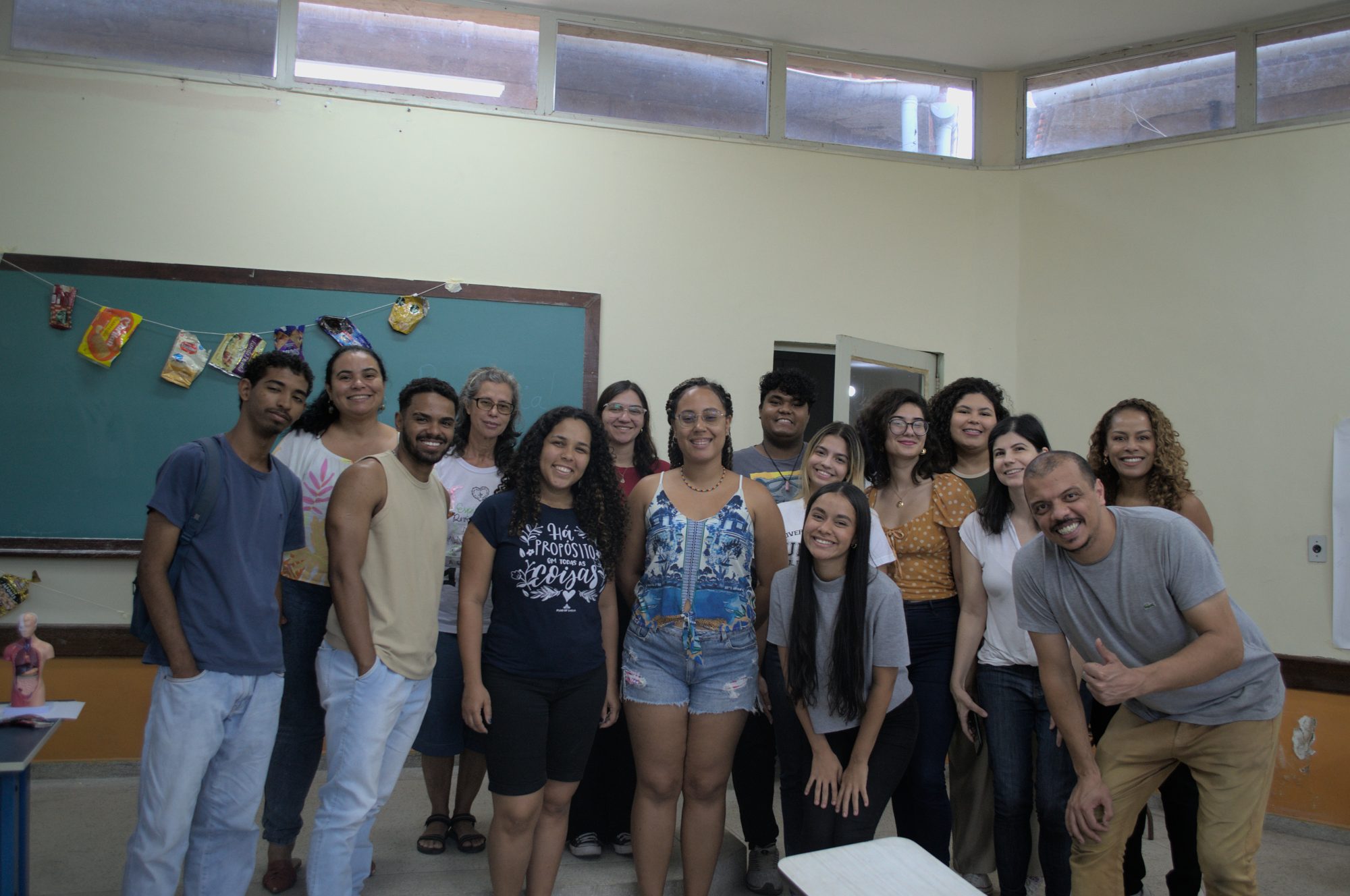 A atividade desdobrou o tema em quatro momentos, começando com uma exposição sobre as diferenças entre alimentos in natura, minimamente processados e ultraprocessados. Depois, os participantes se dividiram em grupos para discutir tabelas nutricionais e classificar alimentos usando embalagens fornecidas. Na terceira etapa, os grupos desenharam a estrutura do sistema digestório, com os professores disponíveis para esclarecer dúvidas. A oficina foi finalizada com a apresentação de um vídeo sobre a microbiota intestinal e a síntese dos conteúdos explorados.