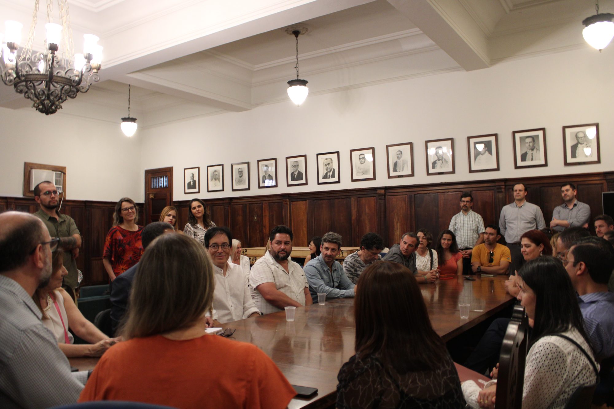 Experiências e sotaques diversos — A mesa de reunião do Gabinete foi pequena para acolher os cerca de 30 pesquisadores de seis diferentes países – Espanha, Portugal, Alemanha, Bulgária, Colômbia e Chile. O espanhol, o inglês e o português se misturavam nas falas e conversas, num ambiente de troca de experiências e conhecimentos.
