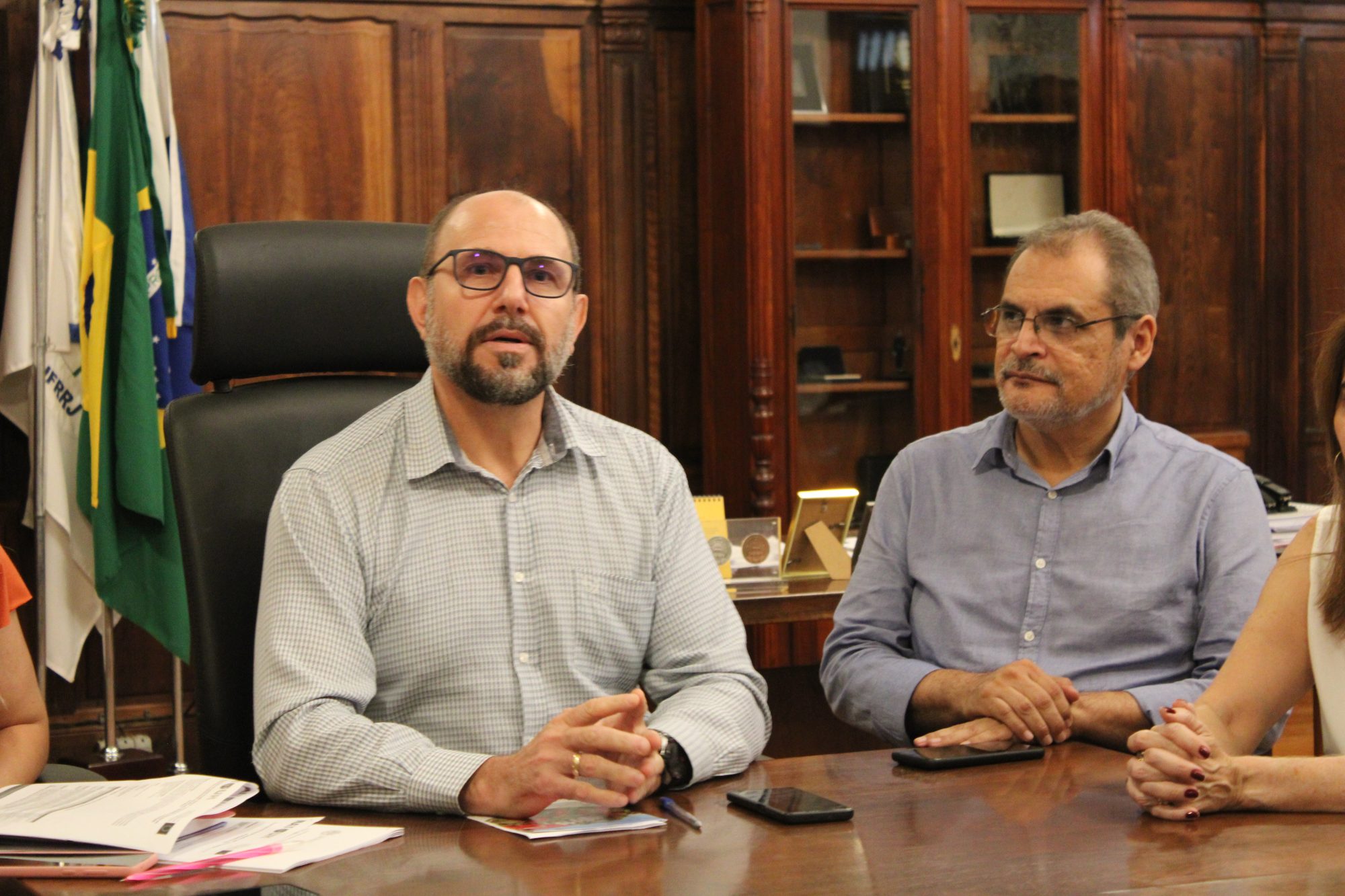 A reunião na Reitoria foi a sequência da visita à UFRRJ, iniciada na sede do PPGEA. À tarde, os vistantes foram recebidos pelo vice-reitor Cesar da Ros; pelos pró-reitores José Luis Luque (Pesquisa e Pós-Graduação), Rosa Mendes (Extensão) e Edileuza Queiroz (adjunta — Extensão); e pela coordenadora de Relações Internacionais e Interinstitucionais Shana Mattos.