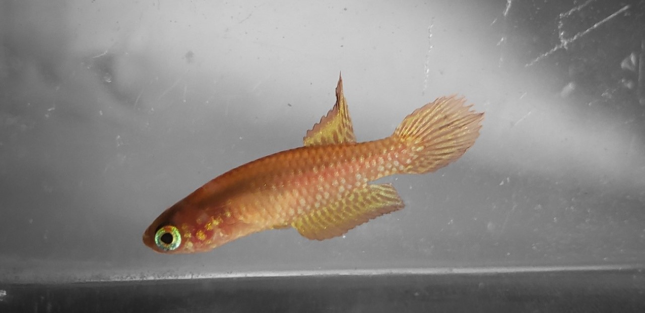 Também conhecidos como peixes anuais, os Leptopanchax opalescens são peixes miniatura. Em sua fase adulta, atingem o tamanho máximo de aproximadamente 3 centímetros. (Imagem: Divulgação/ LEP – UFRRJ)