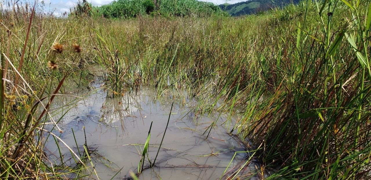 Brejo alagado onde o Leptopanchax opalescens foi encontrado pelos pesquisadores, em Seropédica/RJ. (Imagem: Divulgação/LEP-UFRRJ).