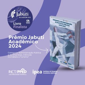 A coletânea organizada pelo Instituto de Pesquisa Econômica Aplicada (IPEA) e pelo Instituto Nacional de Ciência e Tecnologia em Políticas Públicas, Estratégias e Desenvolvimento (INCT/PPED), “Desmonte e reconfiguração de políticas públicas no Brasil (2016-022)”, é uma das cinco finalistas do Prêmio Jabuti Acadêmico 2024, na categoria “Administração Pública e de Empresas, Ciências Contábeis e Turismo”. O livro foi organizado por Alexandre Gomide, Michelle Silva e Maria Antonieta Leopoldi.