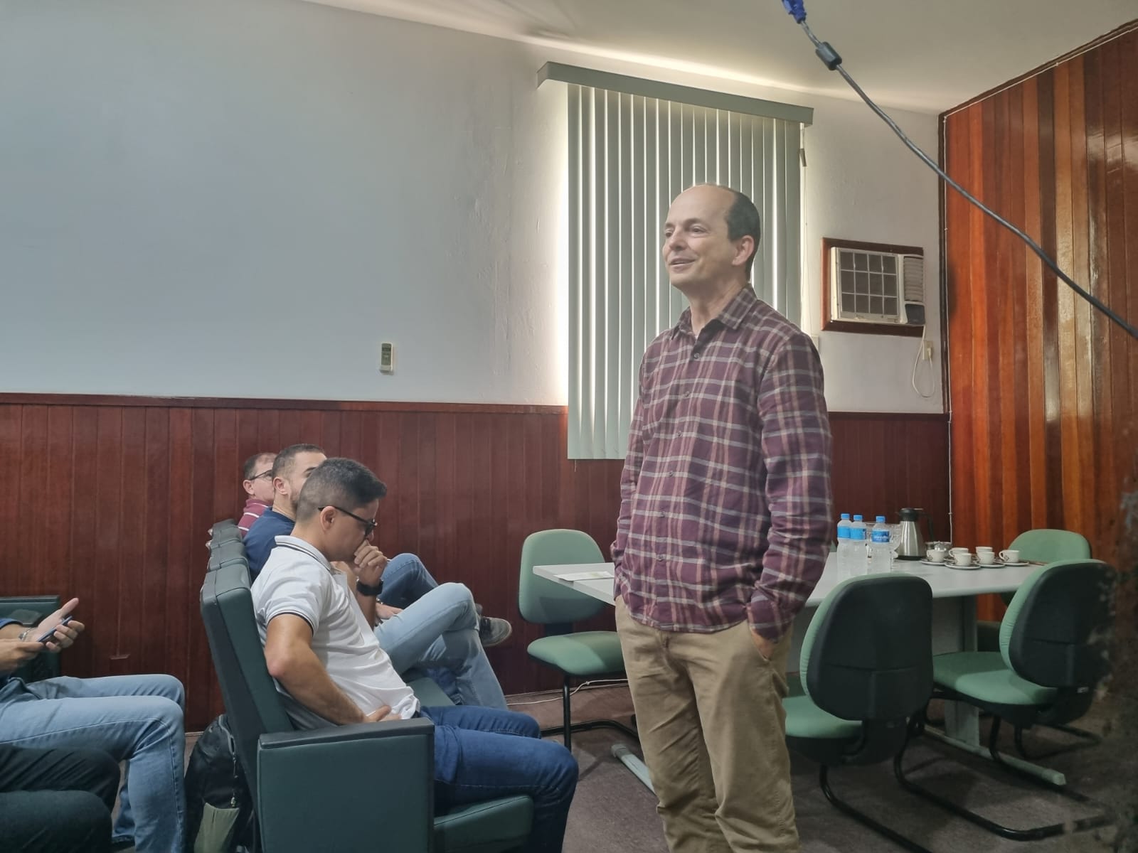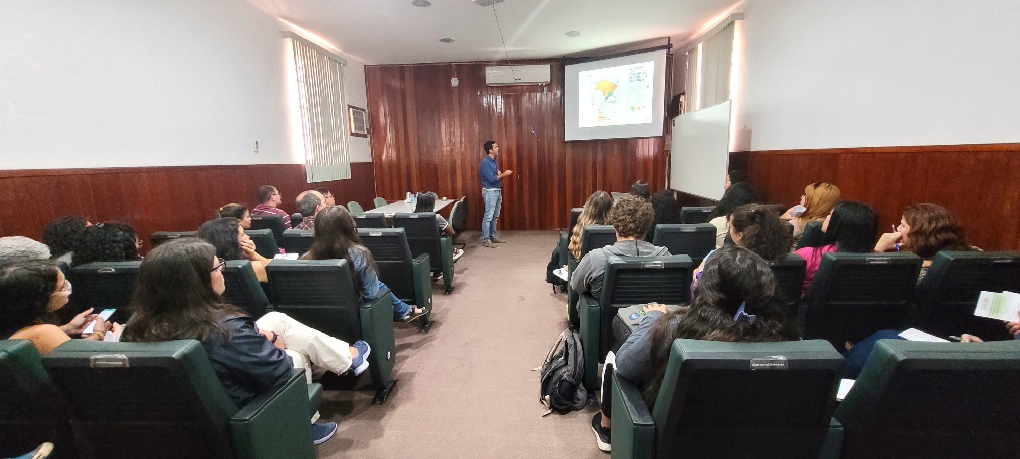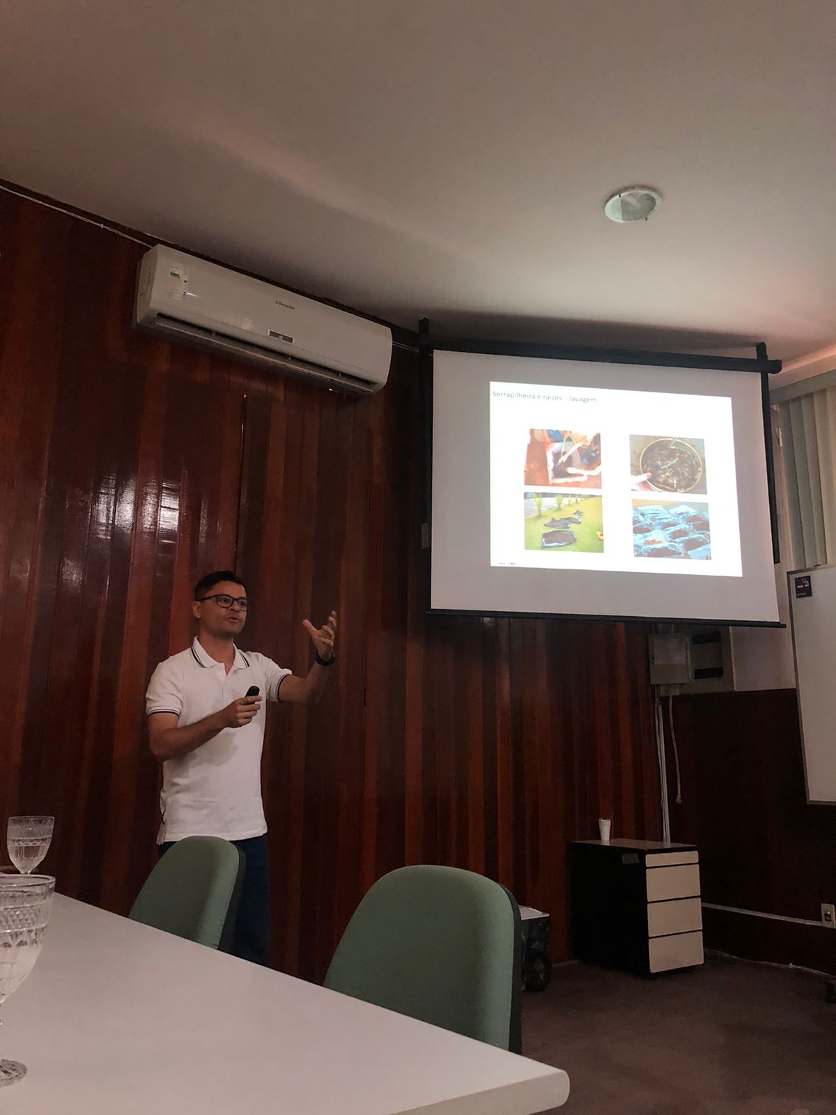 As palestras começaram com o professor Vinícius Morais, da Universidade do Estado de Mato Grosso (UNEMAT), que compartilhou suas pesquisas sobre a quantificação de carbono no bioma cerrado do estado de Minas Gerais. O docente detalhou suas contribuições significativas na avaliação do carbono presente na serrapilheira, raízes de plantas e no solo em todo o estado de Minas.