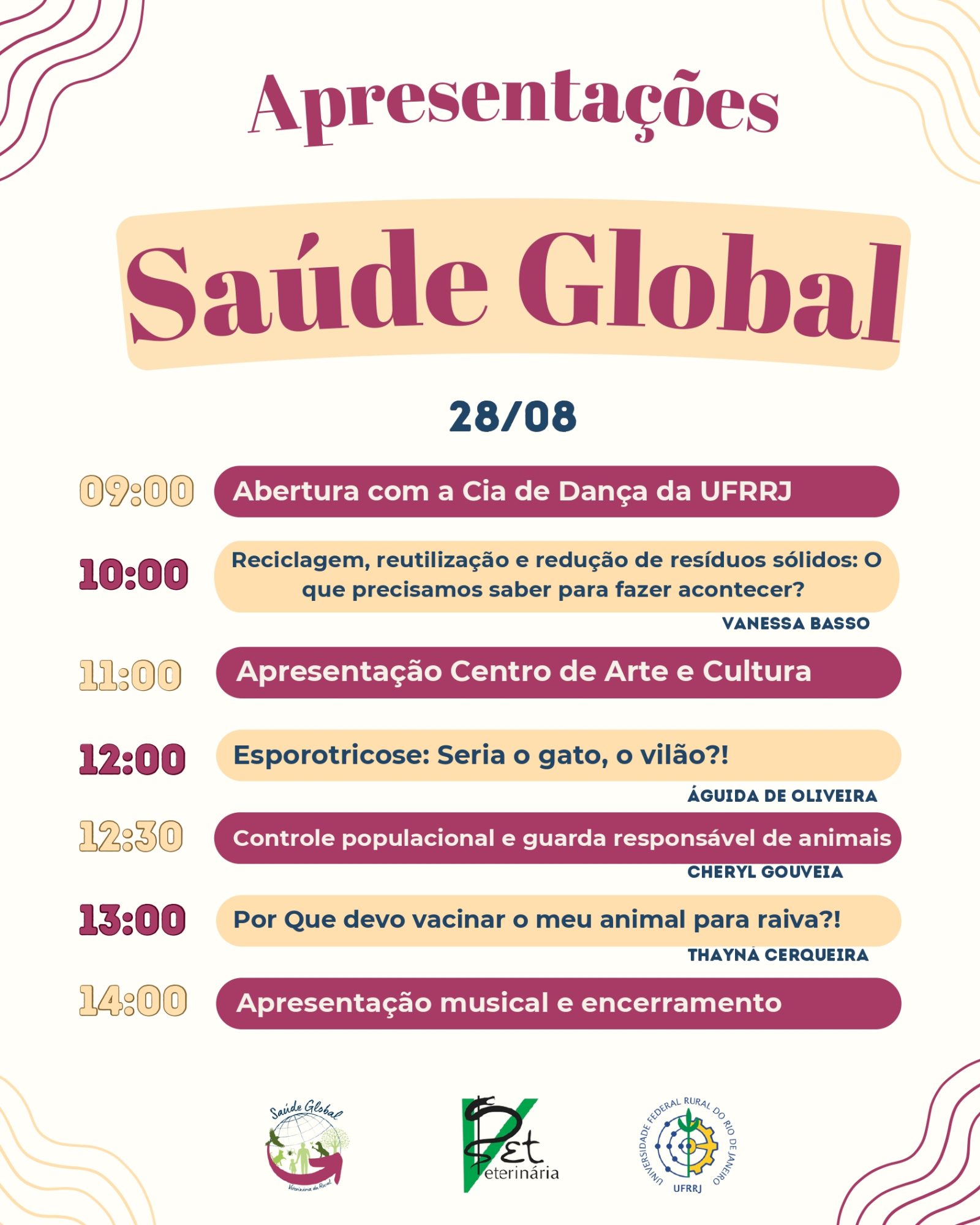 O “Veterinária da Rural, Saúde Global” celebra sua 10ª edição focando sua missão na interação com a comunidade de Seropédica. Seu propósito é contribuir para a educação da população sobre a saúde animal, humana e ambiental, e suas inter-relações, promovendo a troca de saberes, difundindo a ciência e as pesquisas desenvolvidas na UFRRJ, os serviços do Hospital Veterinário e dos laboratórios do Instituto de Veterinária.