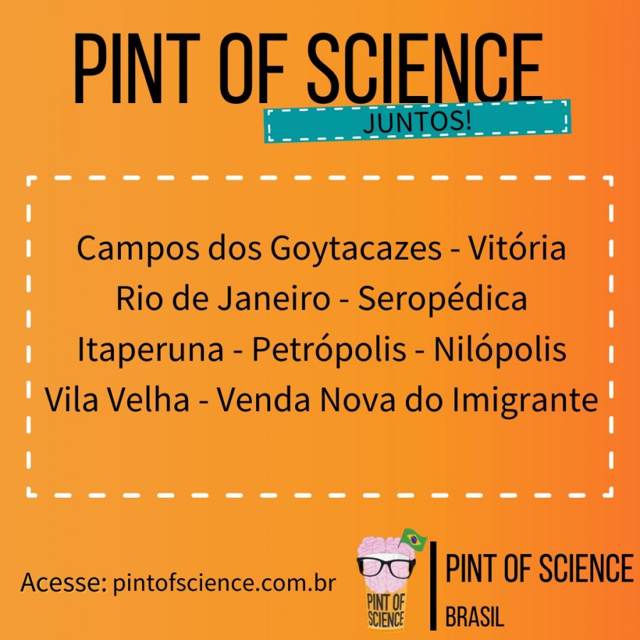 Além da programação nacional, a edição do festival contará também com o Pint of Science Juntos – uma programação local organizada por um time de professores e pesquisadores do câmpus Seropédica da Universidade Federal Rural do Rio de Janeiro (UFRRJ) em parceria com pesquisadores de outras universidades do Rio e do Espírito Santo. Durante os três dias de festival, mesas redondas debaterão diferentes temas científicos que são pesquisados no Brasil como, por exemplo, o novo coronavírus, a relação entre arte e ciência e a produção e consumo de cervejas e vinhos.