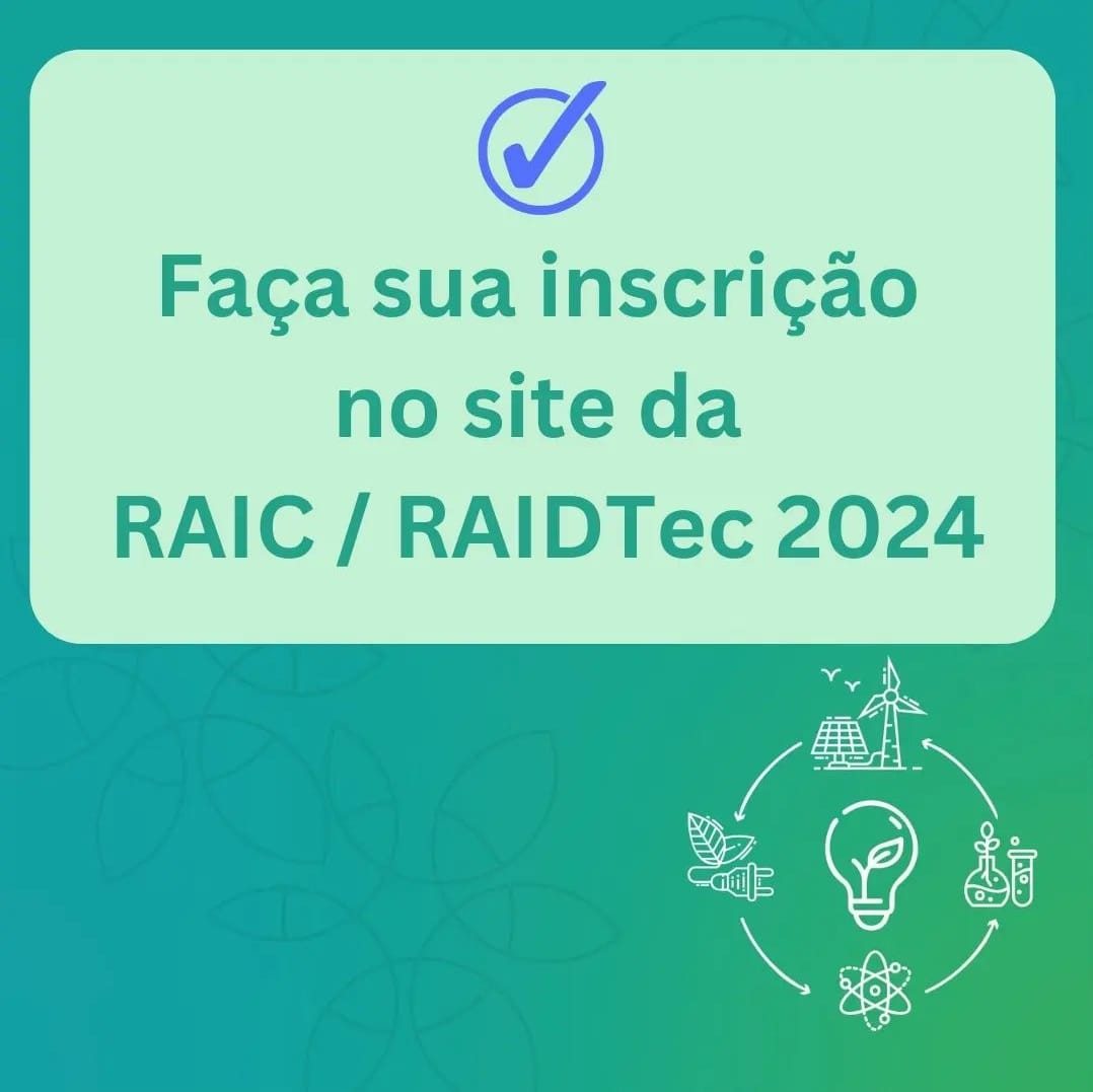 Acompanhe atualizações sobre a RAIC 2024 no site e no perfil do Instagram @raic.ufrrj.raidtec.