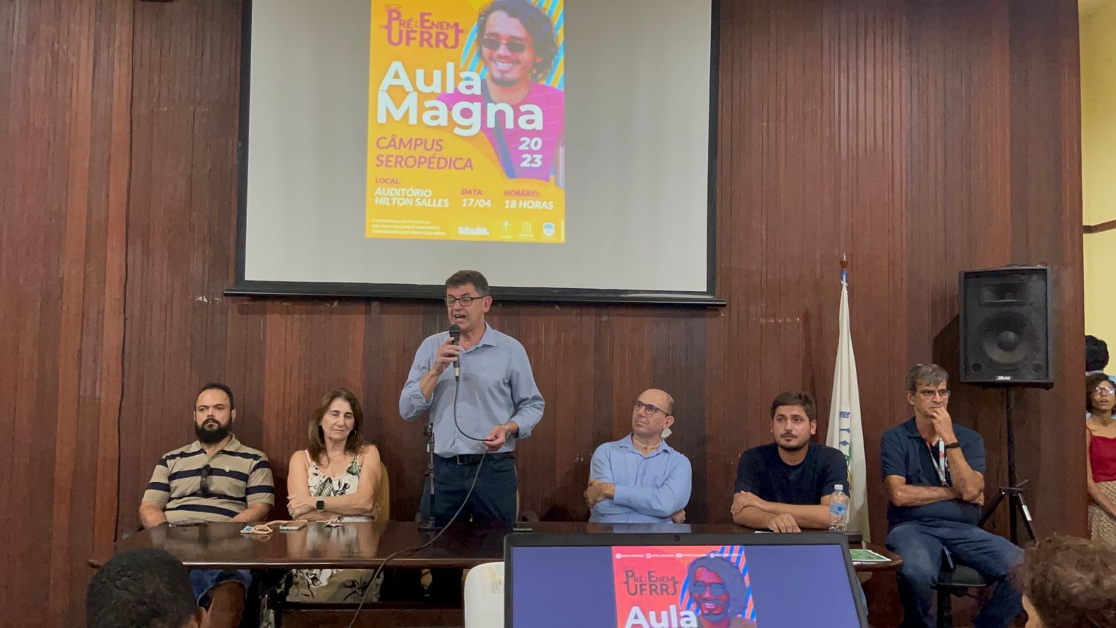 O Pré-Enem da UFRRJ retomou suas ações presenciais, nesta segunda-feira (17/4), com a realização de sua Aula Magna. Neste ano, 150 alunos estão inscritos para participar das atividades no câmpus de Seropédica. O projeto possibilita também que estudantes da Rural estagiem como professores auxiliares.