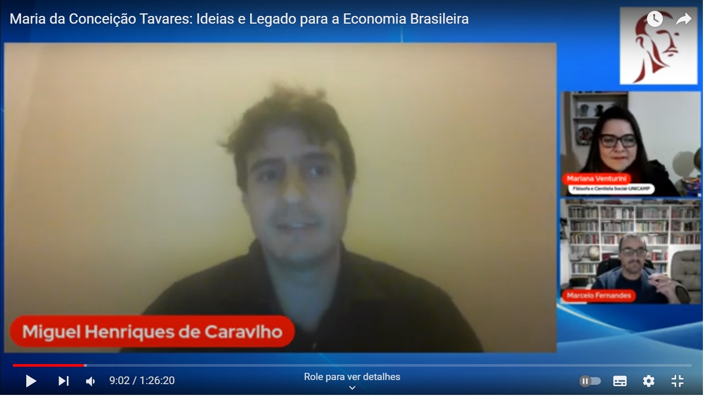 Os professores Miguel Henrique de Carvalho e Marcelo Fernandes, ambos do Departamento de Ciências Econômicas (ICSA/UFRRJ), participaram de um debate virtual sobre as ideias e o legado da economista Maria da Conceição Tavares, falecida no mês passado aos 94 anos. Os docentes da Rural palestraram no programa “Live do João”, promovido pelo canal ‘TV Grabois’ no YouTube.